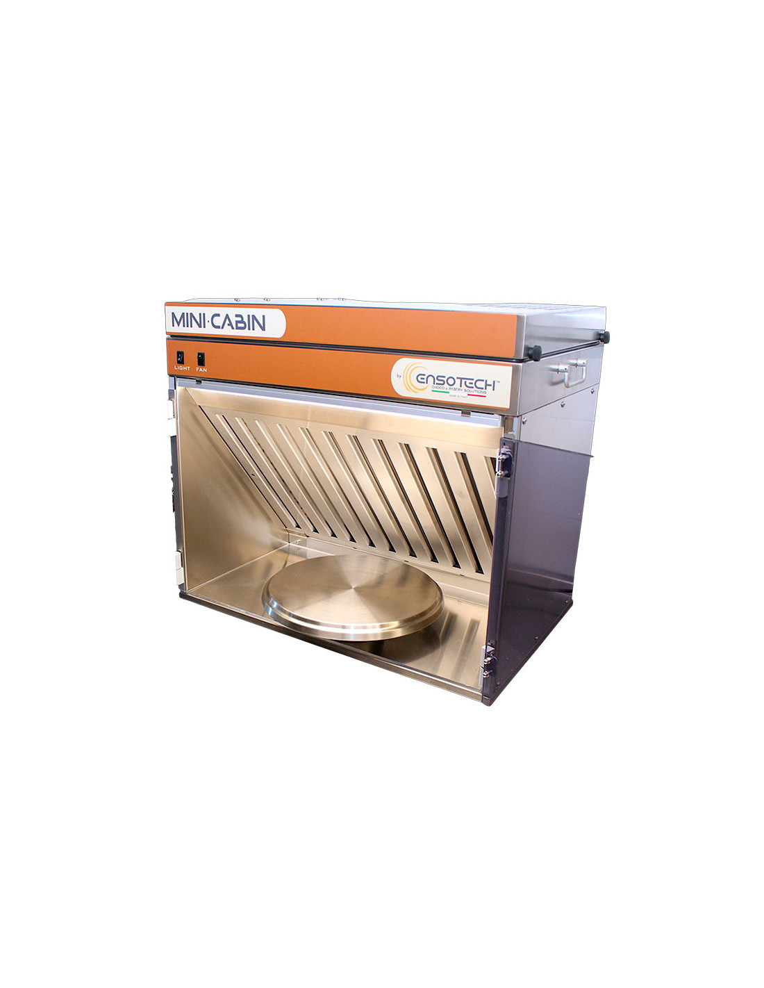 Cabina de pulverización MINI CABIN ENSOTECH, equipo compacto para decoración alimentaria con aire comprimido.