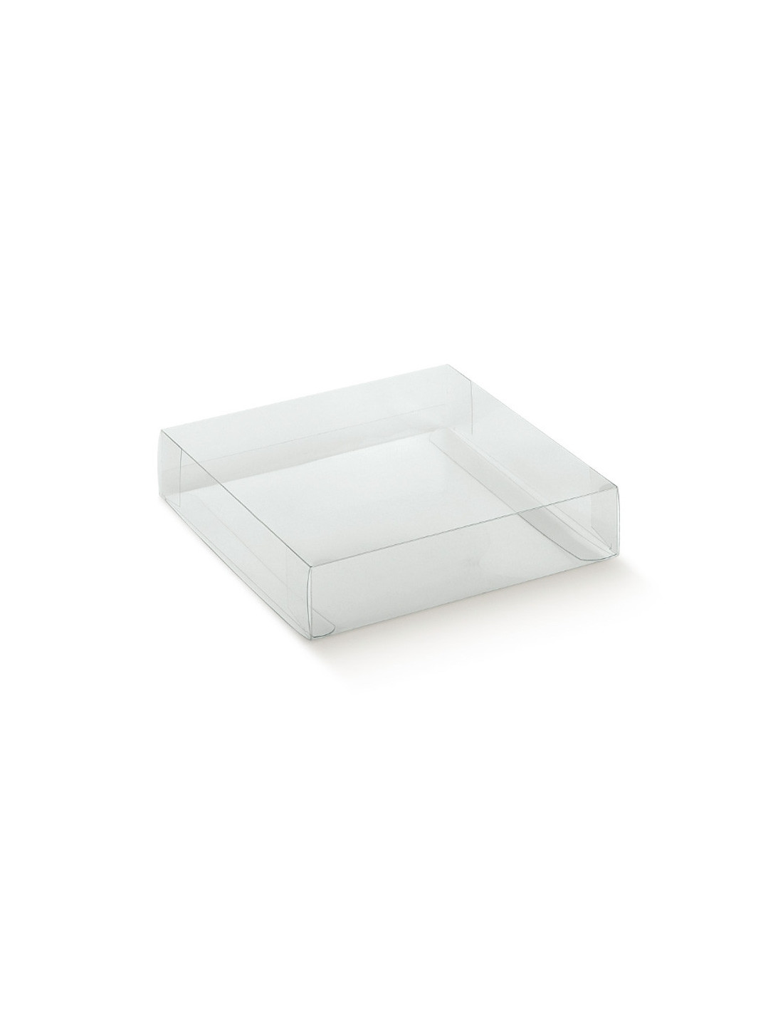 Estuche transparente Astuccio de PET alimentario para presentación de pastelería. Medidas: 155 x 115 x 40 mm. Pack de 10 unidades.