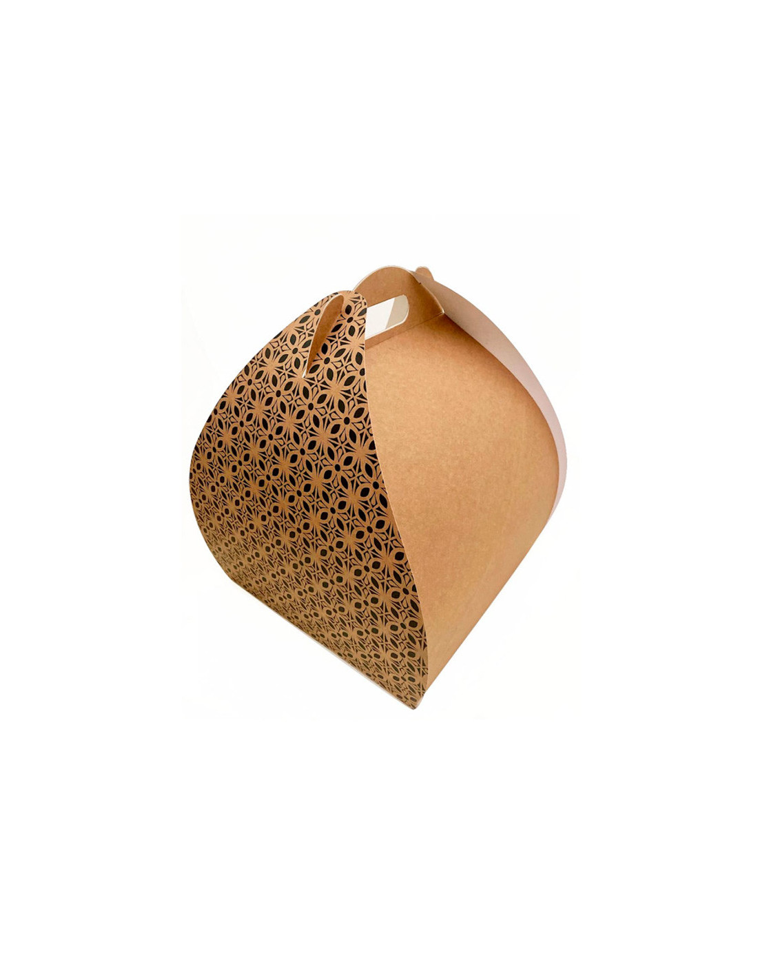 Caja de cartón para Pascua, diseñada para presentaciones elegantes y festivas, decorada con motivos de conejos y pensada para productos de chocolatería y pastelería. Color Amarillo. Medidas 25 x 25 x h32 cm