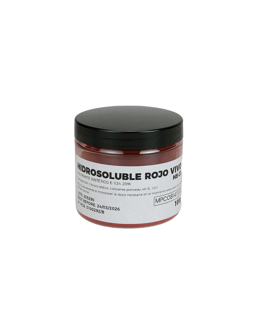 Colorante alimentario hidrosoluble en polvo para pastelería y repostería, de Pavoni. Color: Rojo. Disolución en líquidos con base de agua. Volumen: 50 gramos.