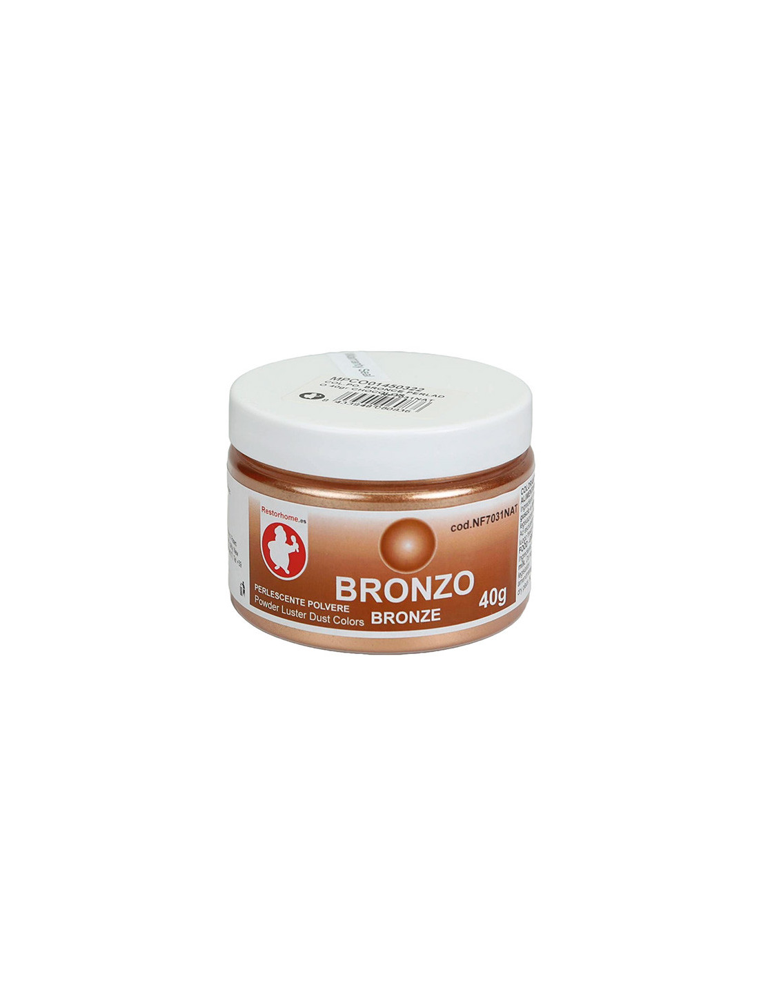 Colorante bronce metálico en polvo comestible. Ideal para acabados brillantes y elegantes en repostería y bombonería. Formato de 40g.