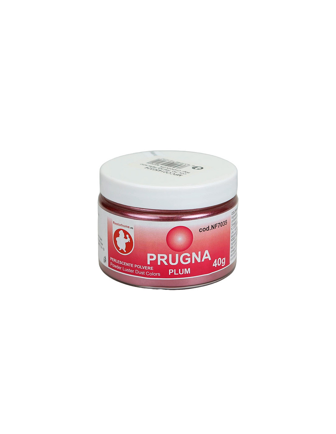 Colorante pruna metálico en polvo comestible. Ideal para acabados brillantes y elegantes en repostería y bombonería. Formato de 40g.