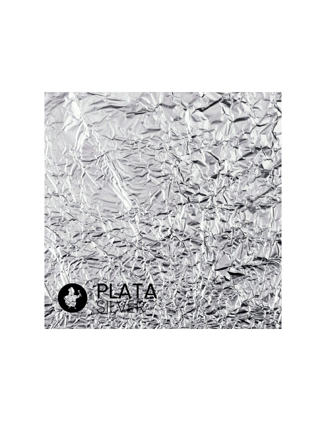 Dossier con 25 hojas de plata comestible de 9,5 x 9,5 cm. Ideal para decoración gourmet en repostería y bombonería.