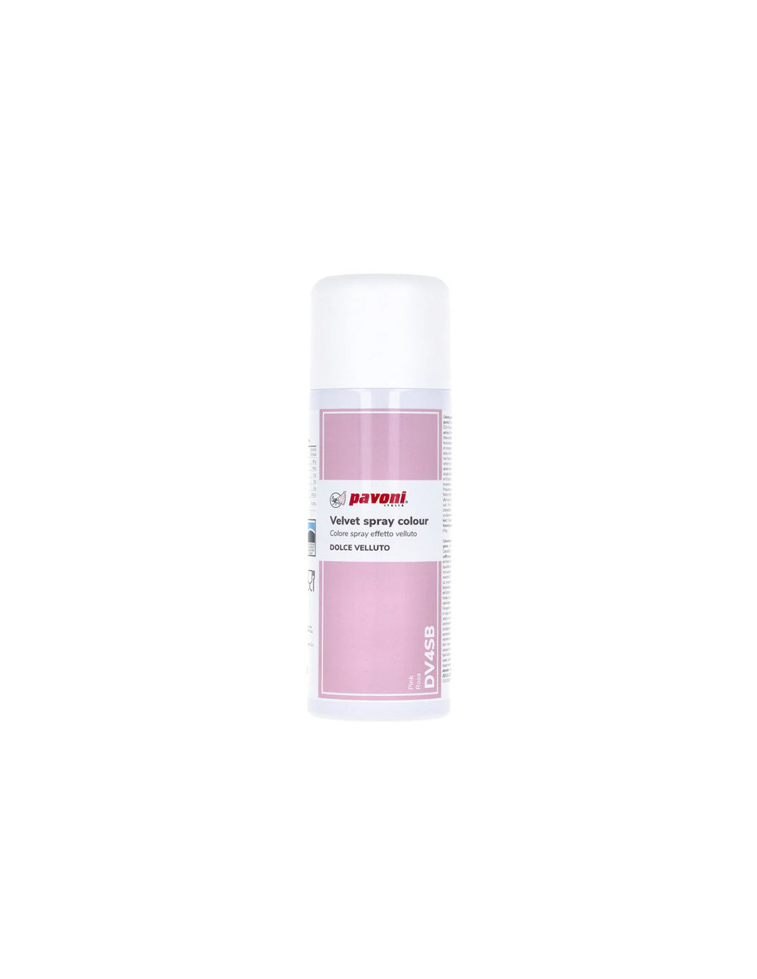 Colorante en spray efecto terciopelo con base de manteca de cacao de la colección Dolce Velluto de Pavoni. Color Blanco. Preparado listo para colorear sobre chocolate y en productos de pastelería y repostería. Capacidad: 400 ml.