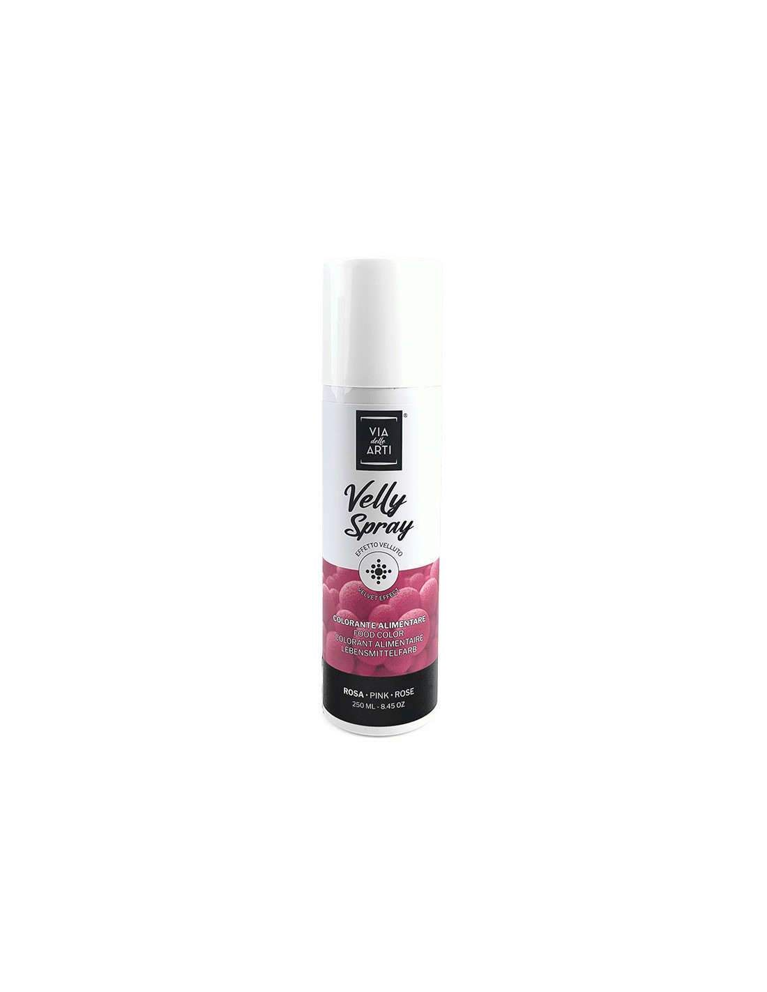 Colorante alimentario en spray de manteca de cacao con efecto terciopelo Vellyspray. Color verde claro. Preparado listo para colorear sobre chocolate y en productos de pastelería y repostería. Capacidad: 250 ml.