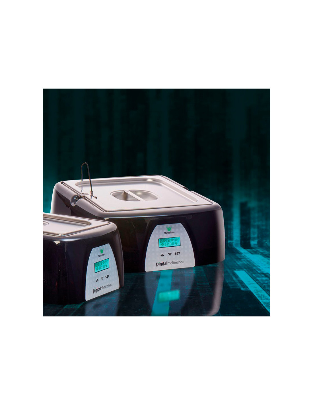 Fundidor Meltinchoc MC108 con cubetas de 1,5 litros.