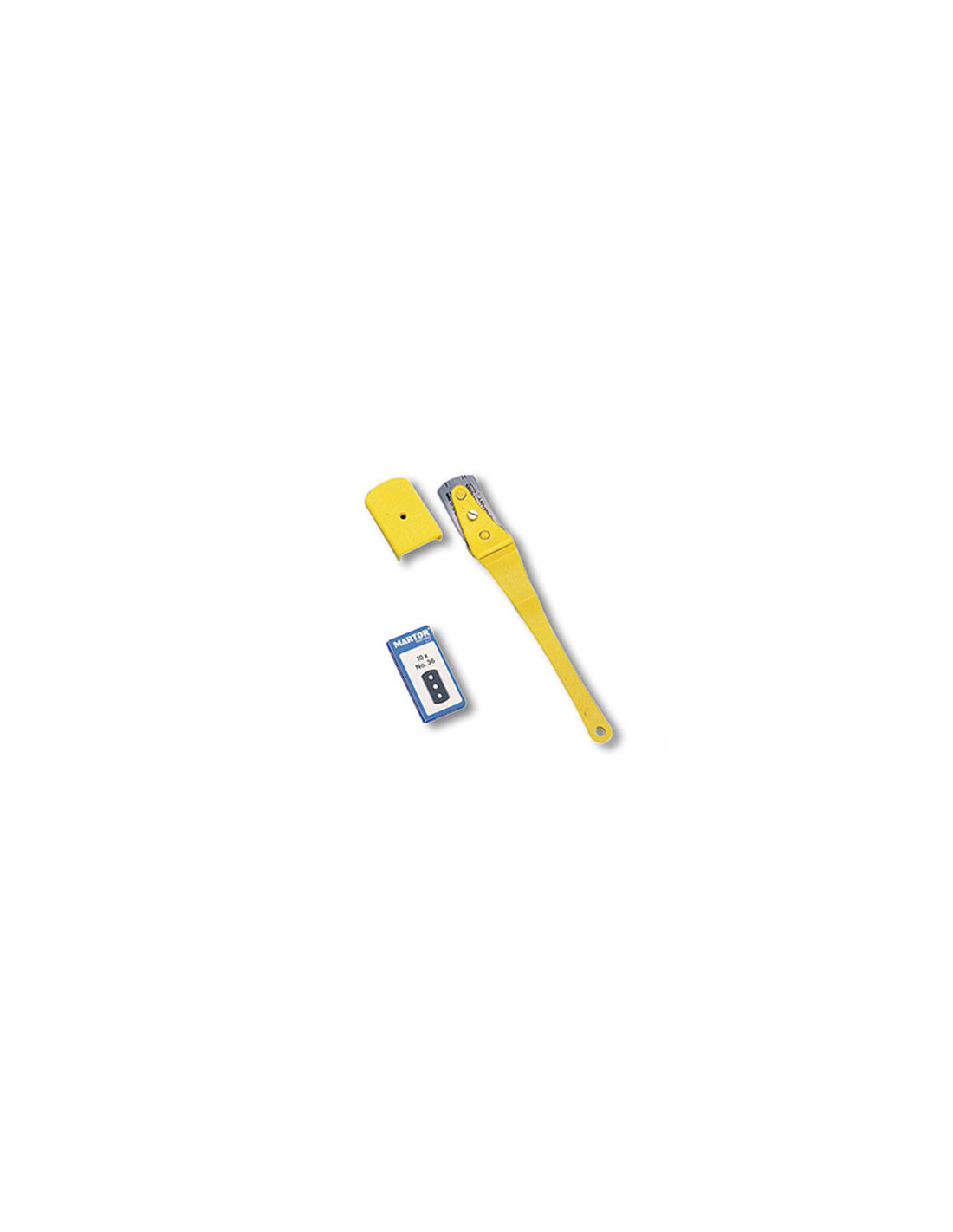 El set incluye un soporte para la cuchilla y un paquete de 10 hojas de recambio, asegurando un uso continuado y eficiente en entornos profesionales.