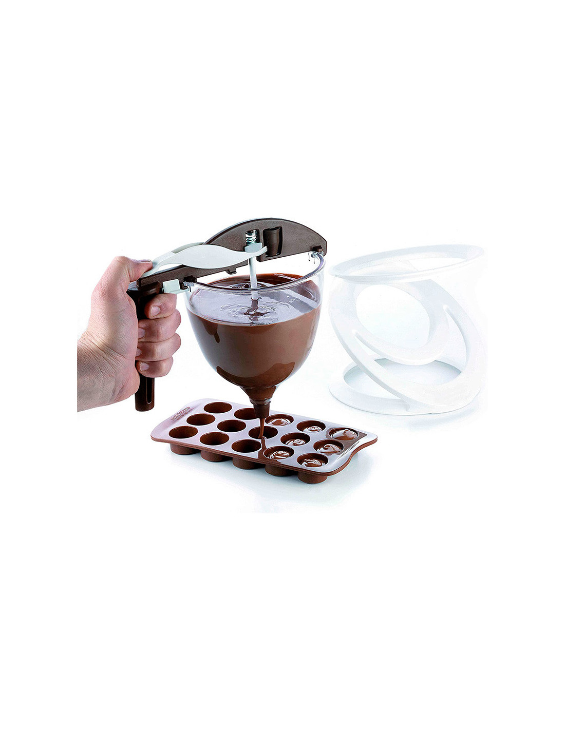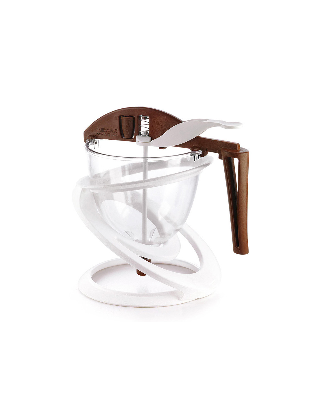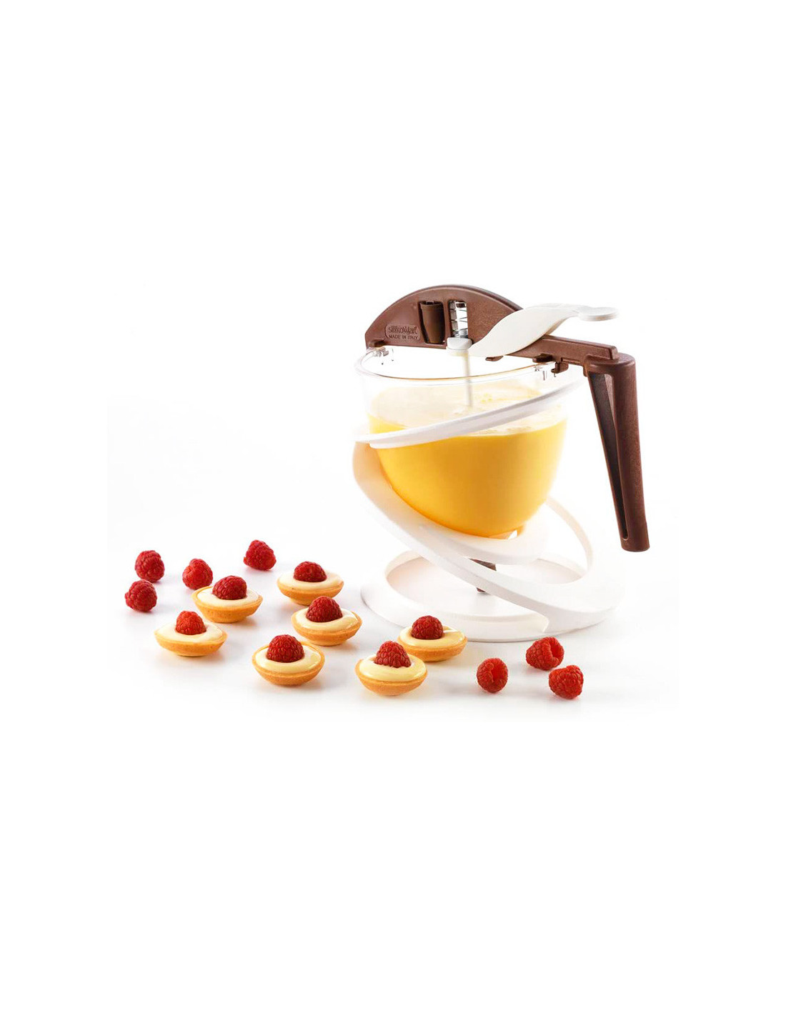 Embudo profesional fabricado en acero inoxidable con mango de plástico ergonómico.