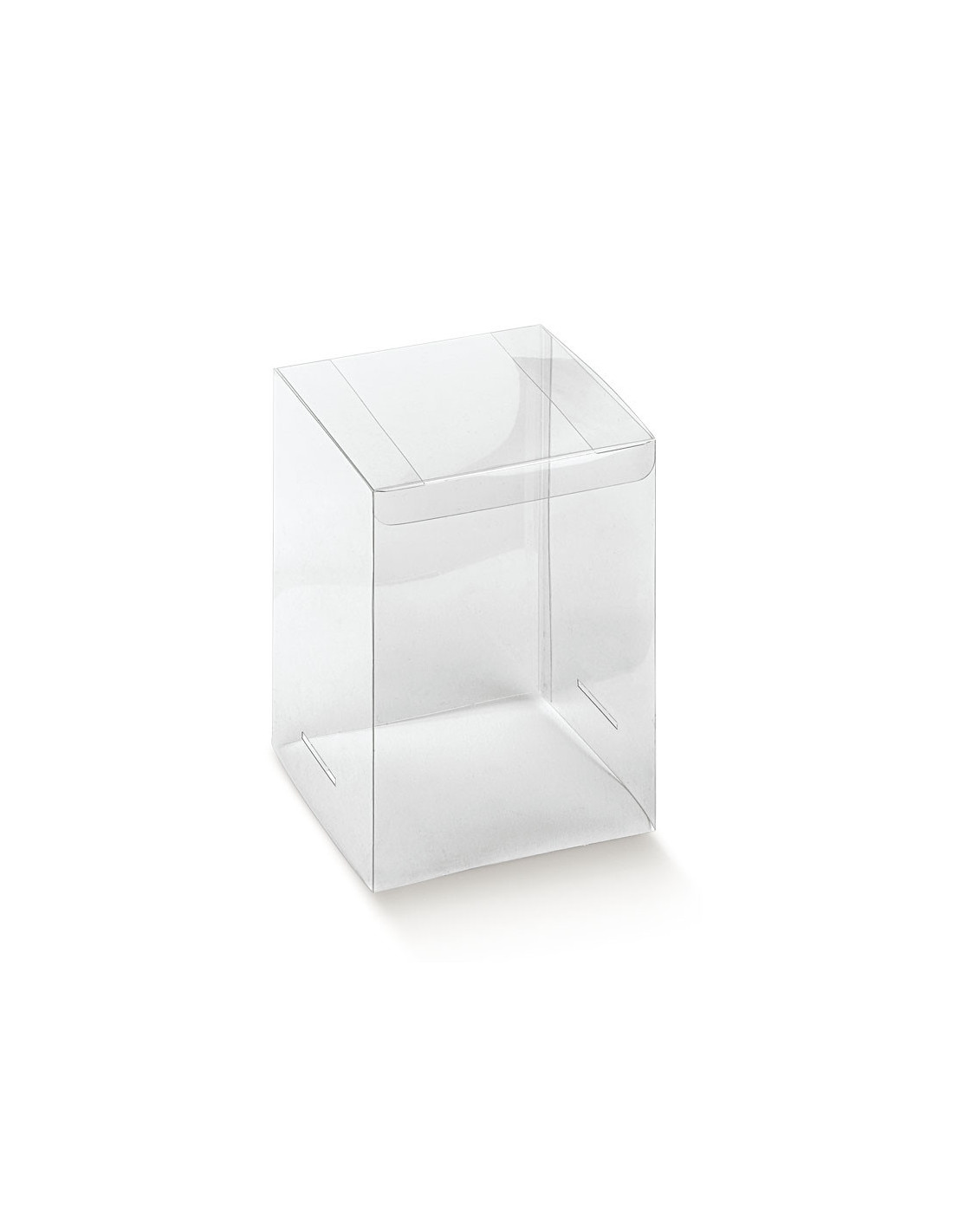Estuche transparente de acetato para exponer o transportar figuras de chocolate. Paquete de 5 unidades. Varias alturas disponibles. Fondo de estuche a la venta por separado.