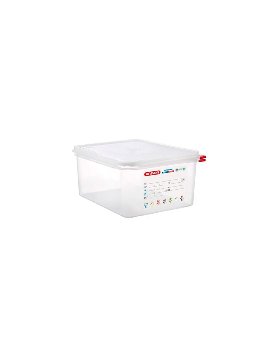 Contenedor hermético apilable translúcido GastroNorm 1/2 de 65 mm de alto y capacidad para 4 litros.