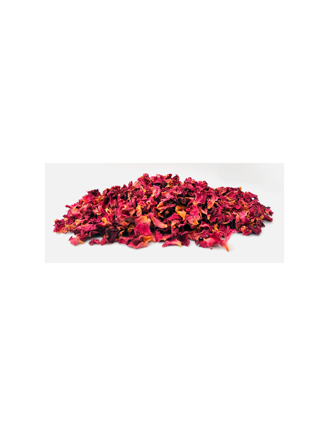 Flor deshidratada de pétalos de rosas comestible. Producto con aspecto típico de pétalos de rosas de color granate intenso. Su aroma es envolvente y delicado. Sabor afrutado y floral con textura muy crujiente.