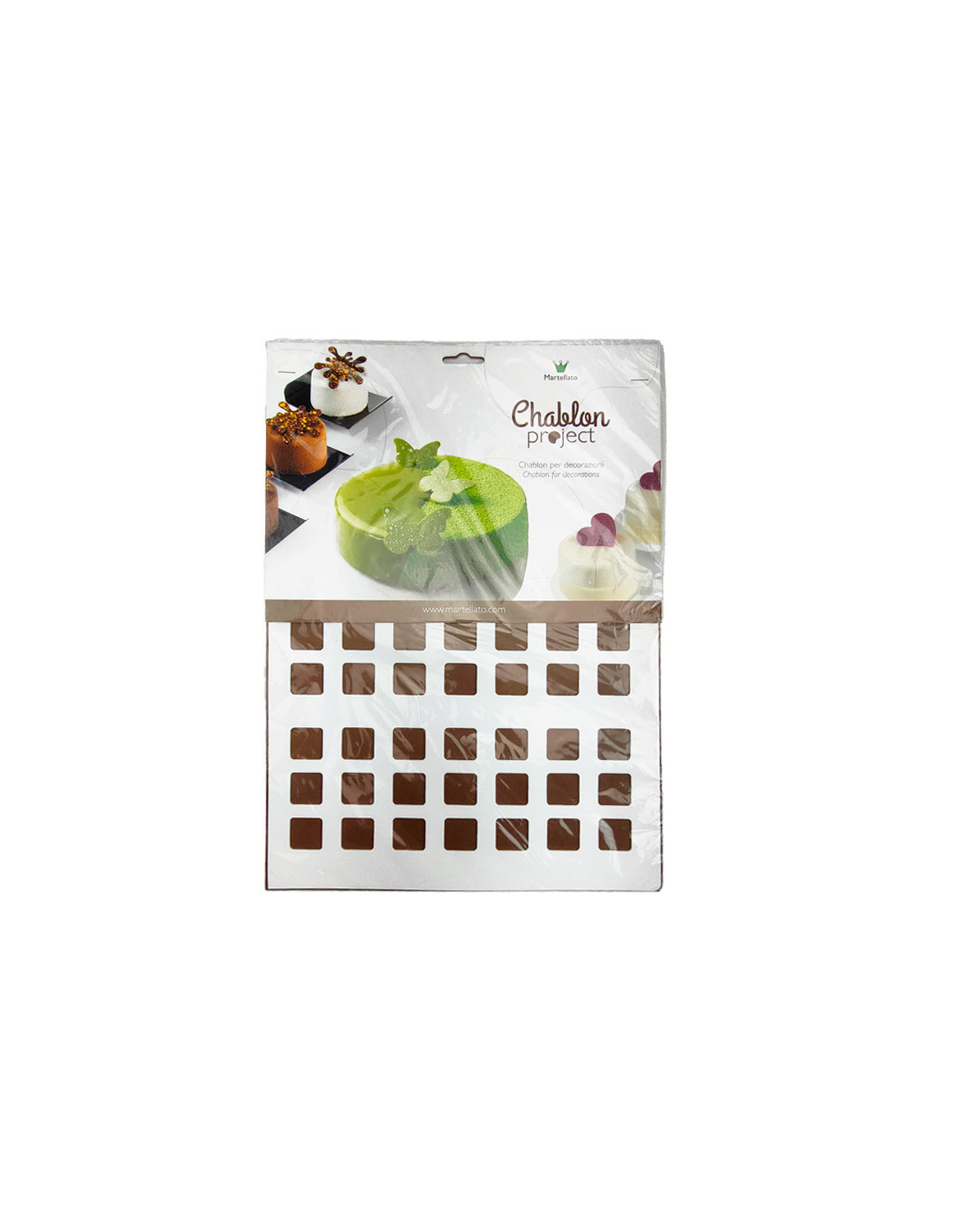 Molde chablon de 390 x 290 x 2 mm para crear 48 decoraciones de 35 x 25 mm. Modelo: Chablon 2 Hoja.