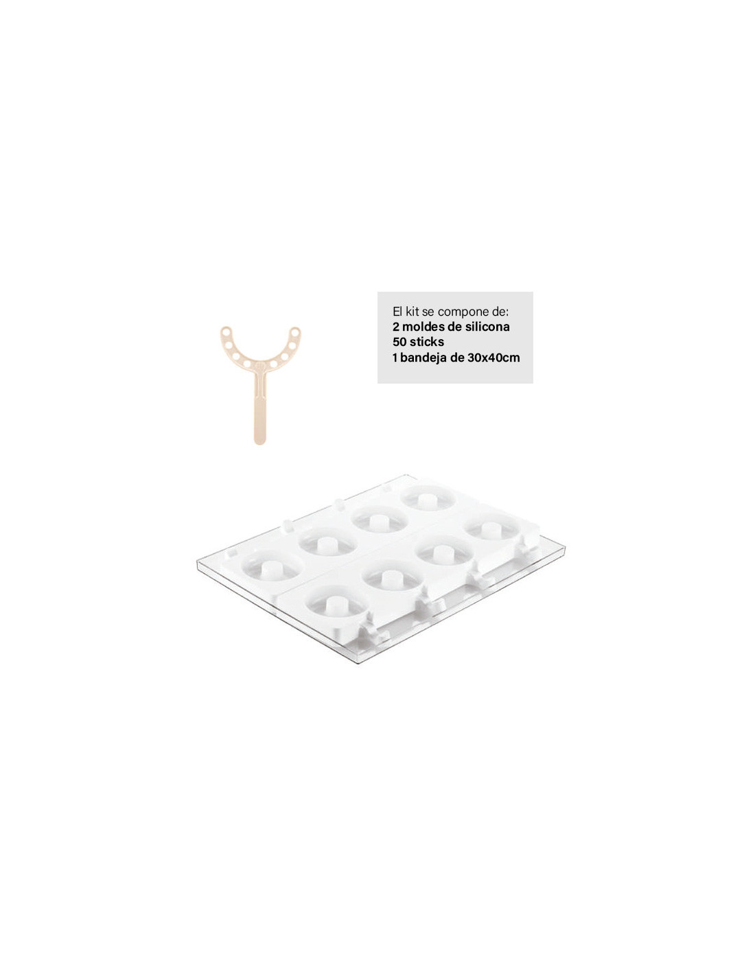 Palo Donuts Stick de 45x35x10 mm. Pack de 50 unidades. Perfecto para presentar donuts y dulces con sujeción y estilo. compatible con Molde Steccoflex Gel13 Donuts