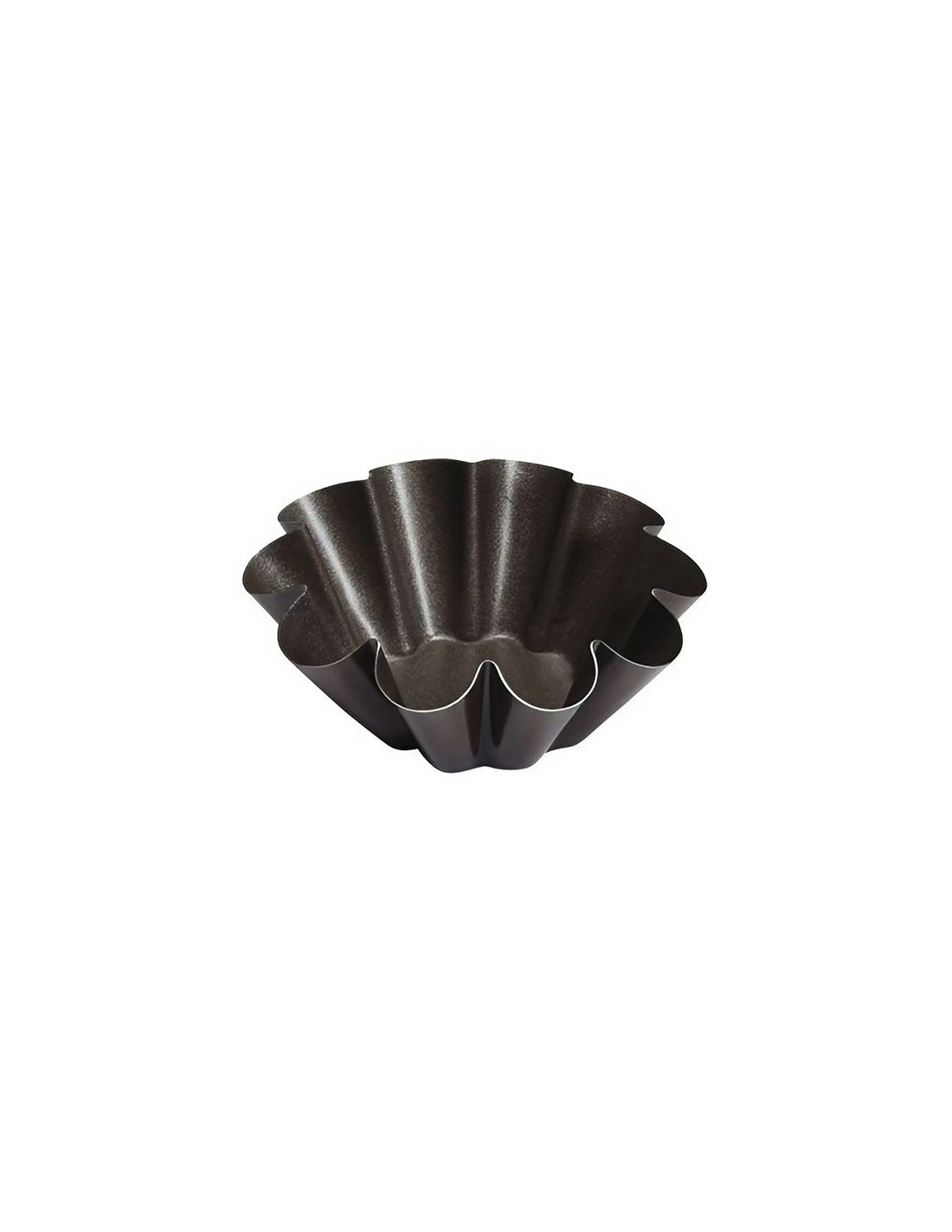 Molde metálico para brioche o magdalena acanalado antiadherente de dos capas color marrón oscuro. Medidas: Ø8/4 x h3.2 cm