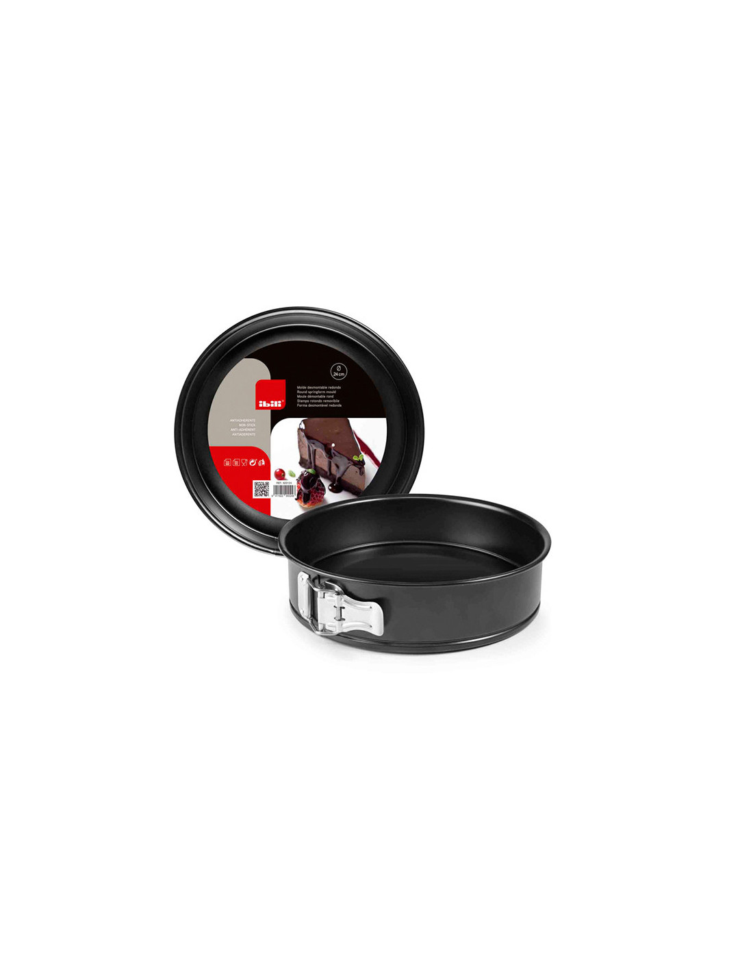 Molde cuadrado antiadherente de 23/22x23/22xh2.5 cm con bordes rizados y fondo mobil, ideal para tartas, bizcochos y pasteles de acabado profesional.