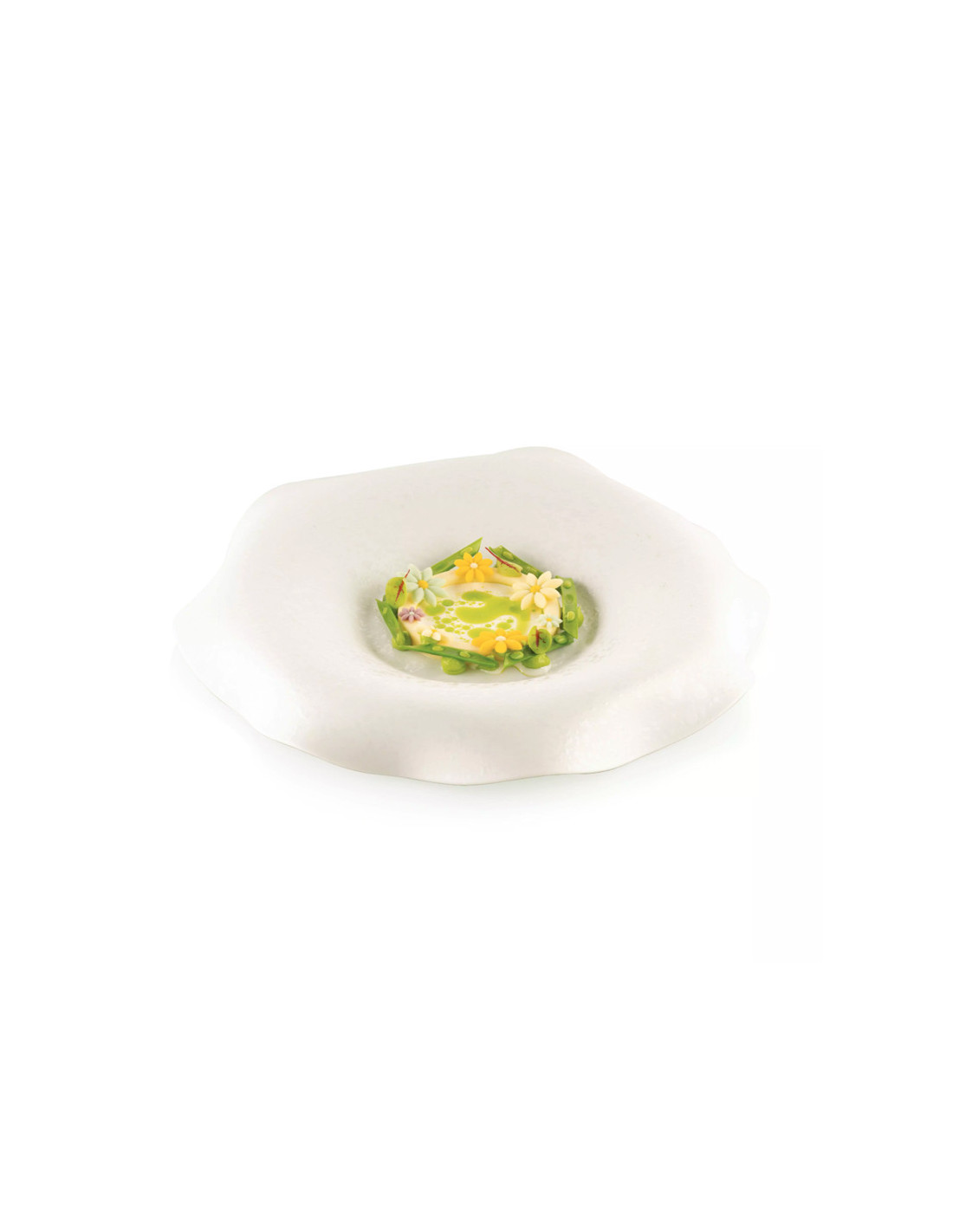 Stencil profesional de silicona platino ultrafina para crear decoraciones precisas y elegantes en platos dulces y salados. Diseñado en colaboración con el pastry chef Titouan Claudet, permite acabados impecables en un solo gesto. Pack de 2 unidades.