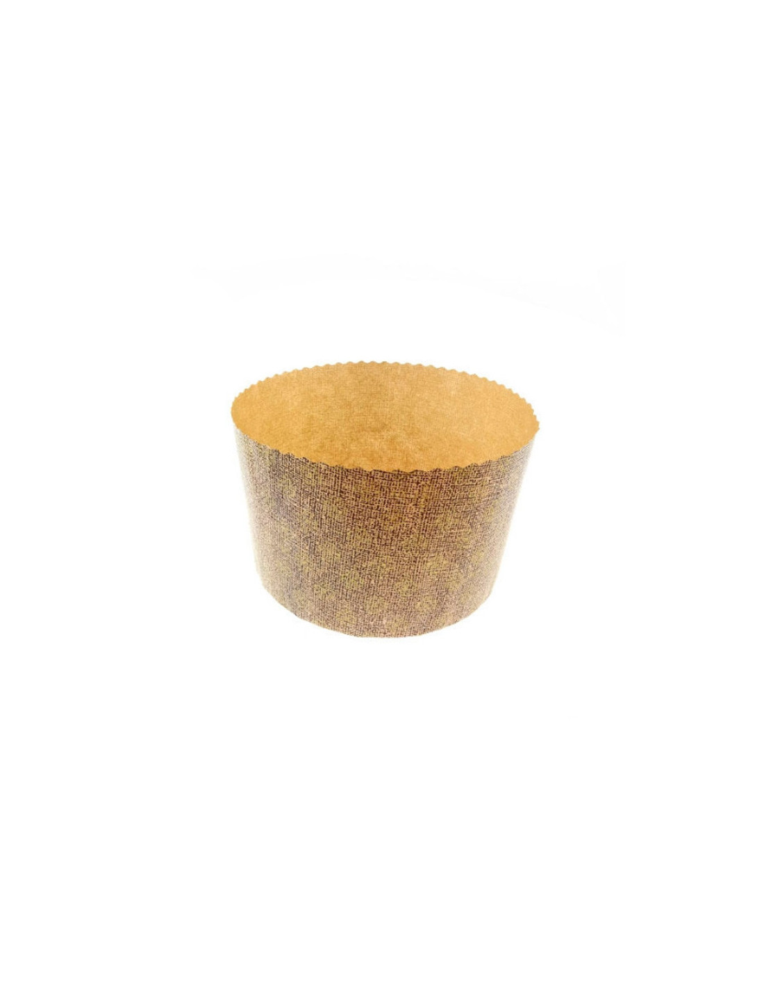Molde Panettone Bajo Gold Flowers. Dimensiones: 240 mm x 80 mm. Caja de 270 unidades.