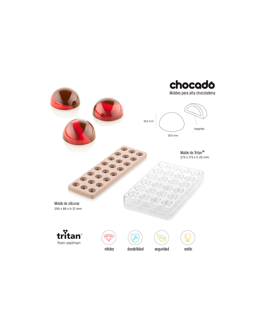 Los moldes Chocado están hechos con el innovador material Tritan ™ que proporciona un excelente nivel de durabilidad y seguridad.