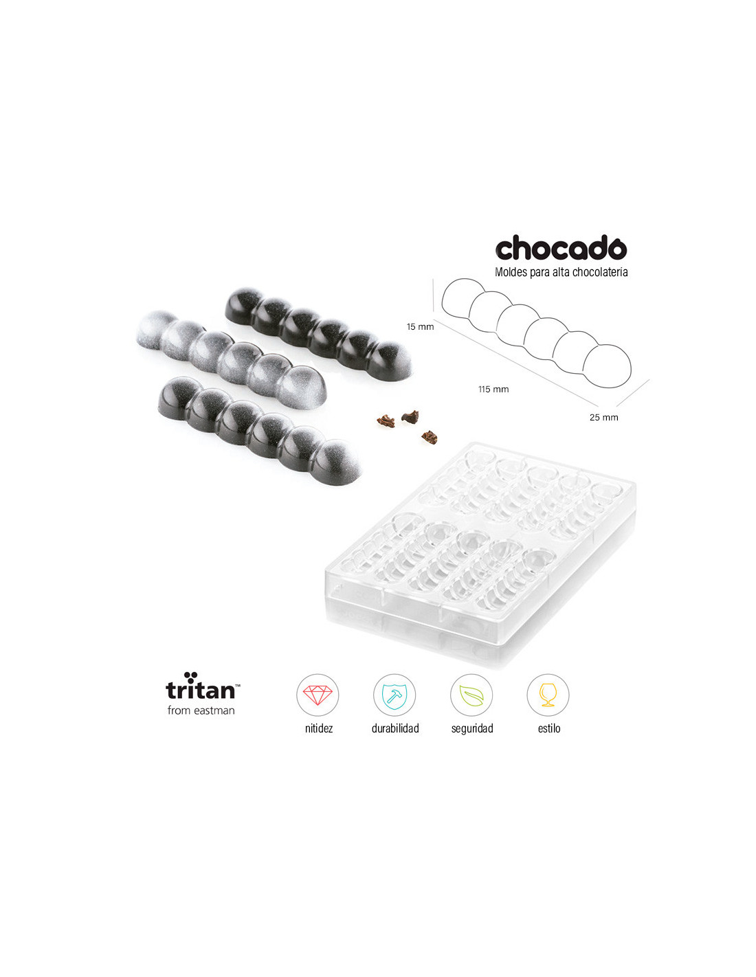 Molde de Tritan Bolla-P de Silikomart Professional, para piezas de chocolate de 40 mm x 25 mm x h14 mm. 24 cavidades.