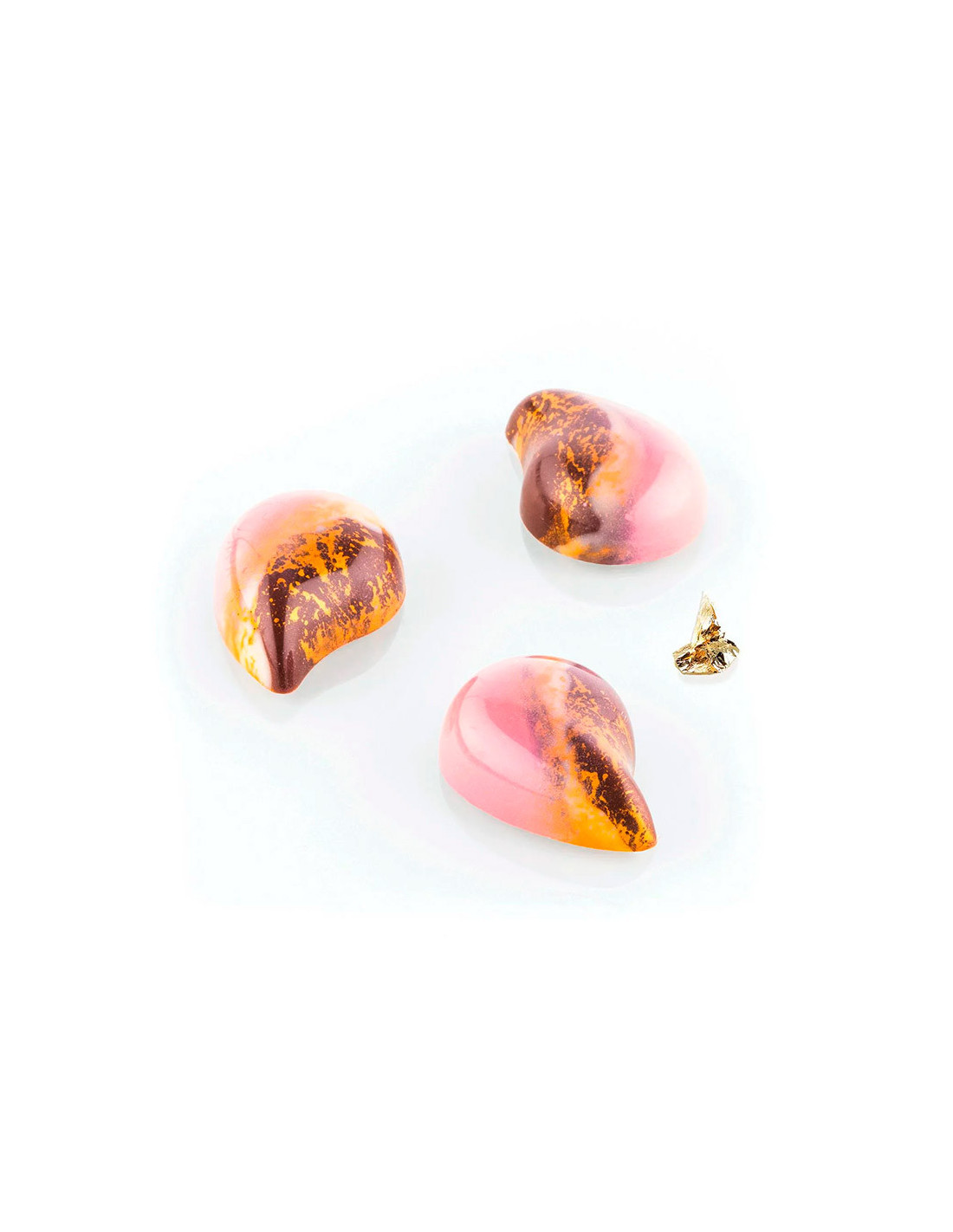 Molde de Tritan Riflesso-P en forma de gota, de Silikomart Professional. Para piezas de chocolate de 44 mm x 28 mm x h 15 mm. 24 cavidades.