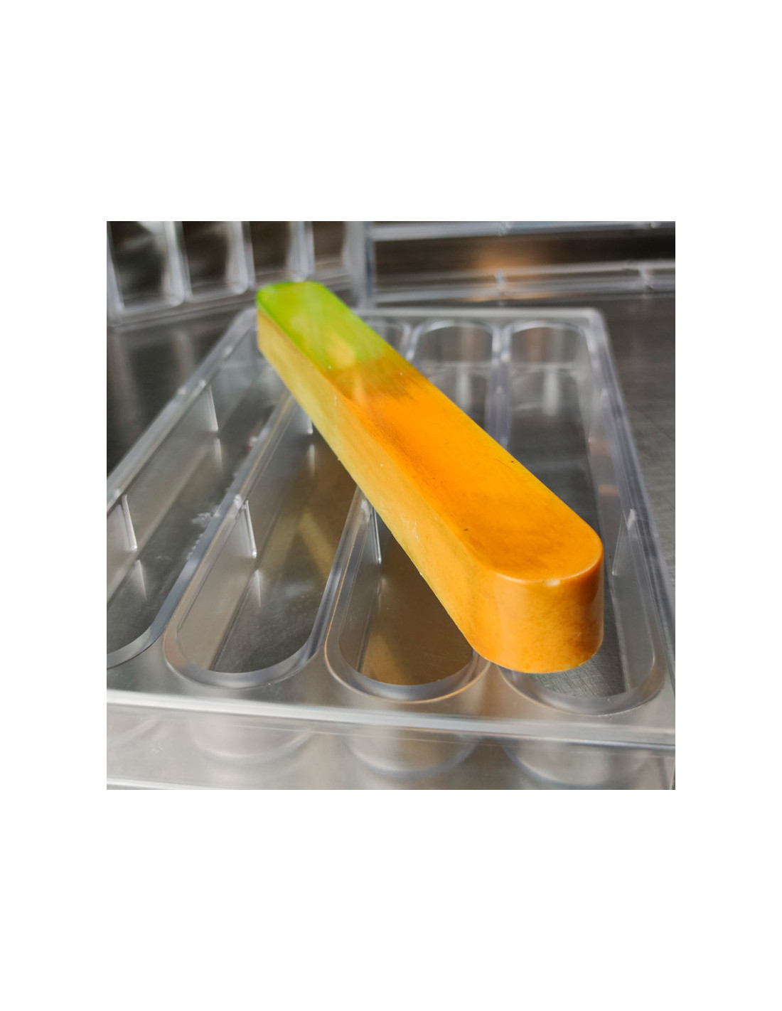 Molde policarbonato para realizar 4 turrones. Medidas: 250 x 34,5 x h25 mm. Forma de media caña.