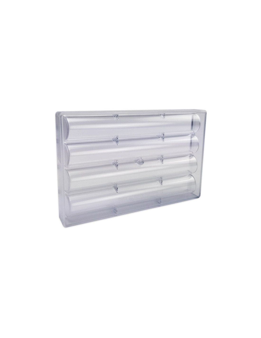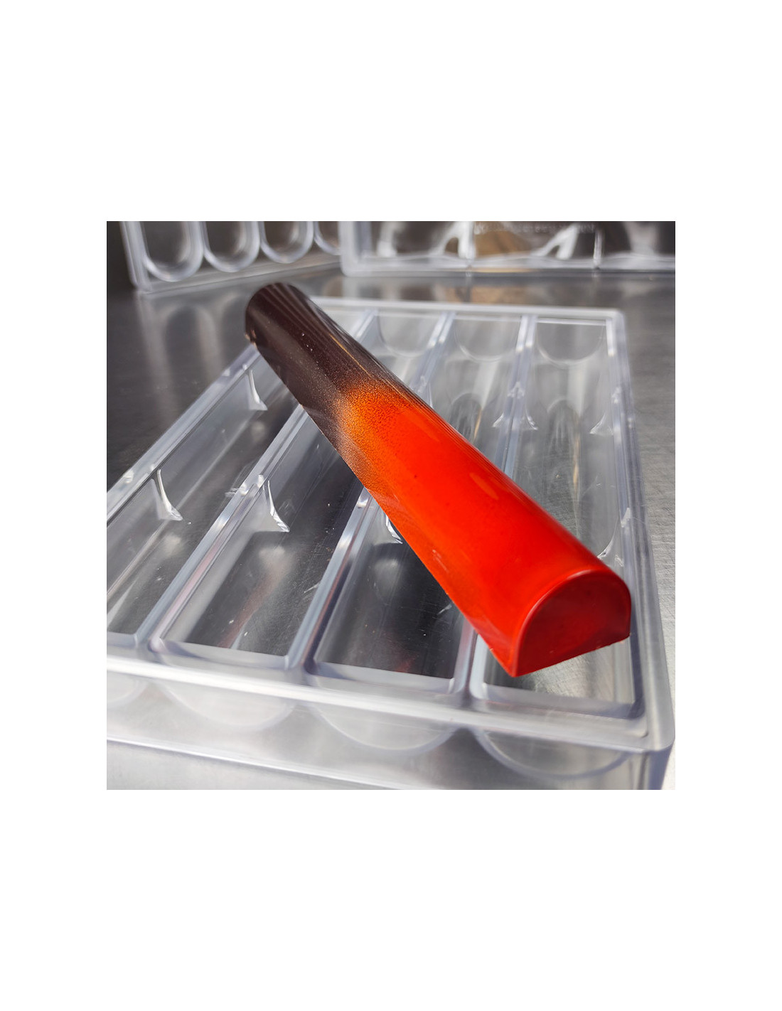 Molde de policarbonato R002 para realizar 4 turrones. Medidas: 250 x 34,5 x h25 mm. Forma: lingote curvo.