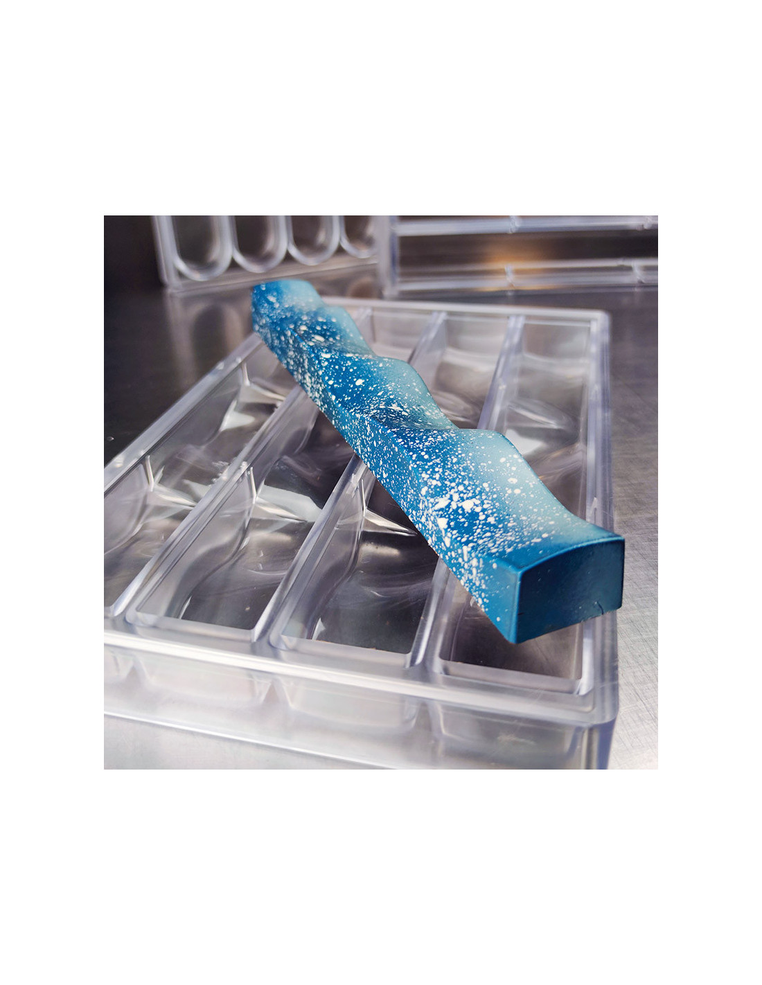 Molde de policarbonato R004 para realizar 4 turrones. Medidas: 250 x 34,5 x h 25 mm. 4 cavidades.