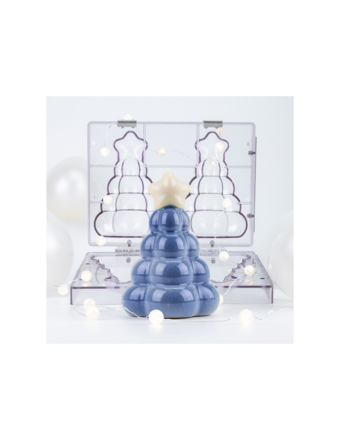 El Molde BALLOON D.118 x h172,5 mm es un molde doble de policarbonato diseñado para elaborar figuras tridimensionales en forma de árbol hecho de globos, con un acabado brillante y profesional. Su diseño permite crear piezas originales y creativas, ideales para presentaciones de chocolatería artística, escaparates o elaboraciones temáticas.