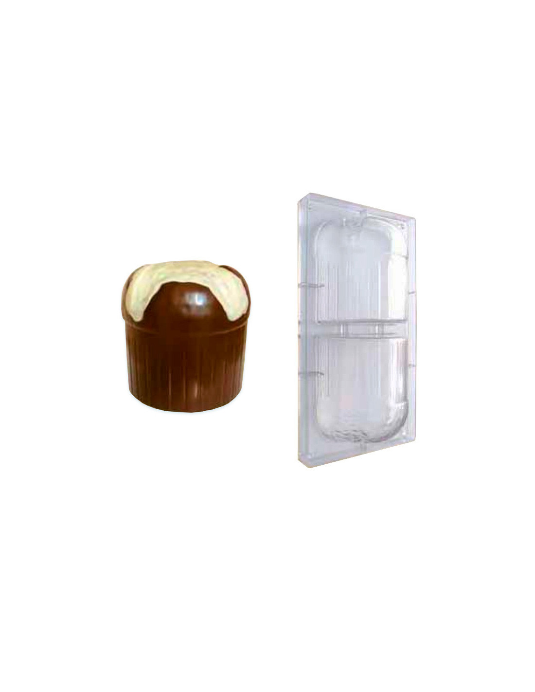 Molde de policarbonato para realizar la figura Panettone M161. Medidas: D144 x h 150 mm. 2 cavidades. Molde acoplable.