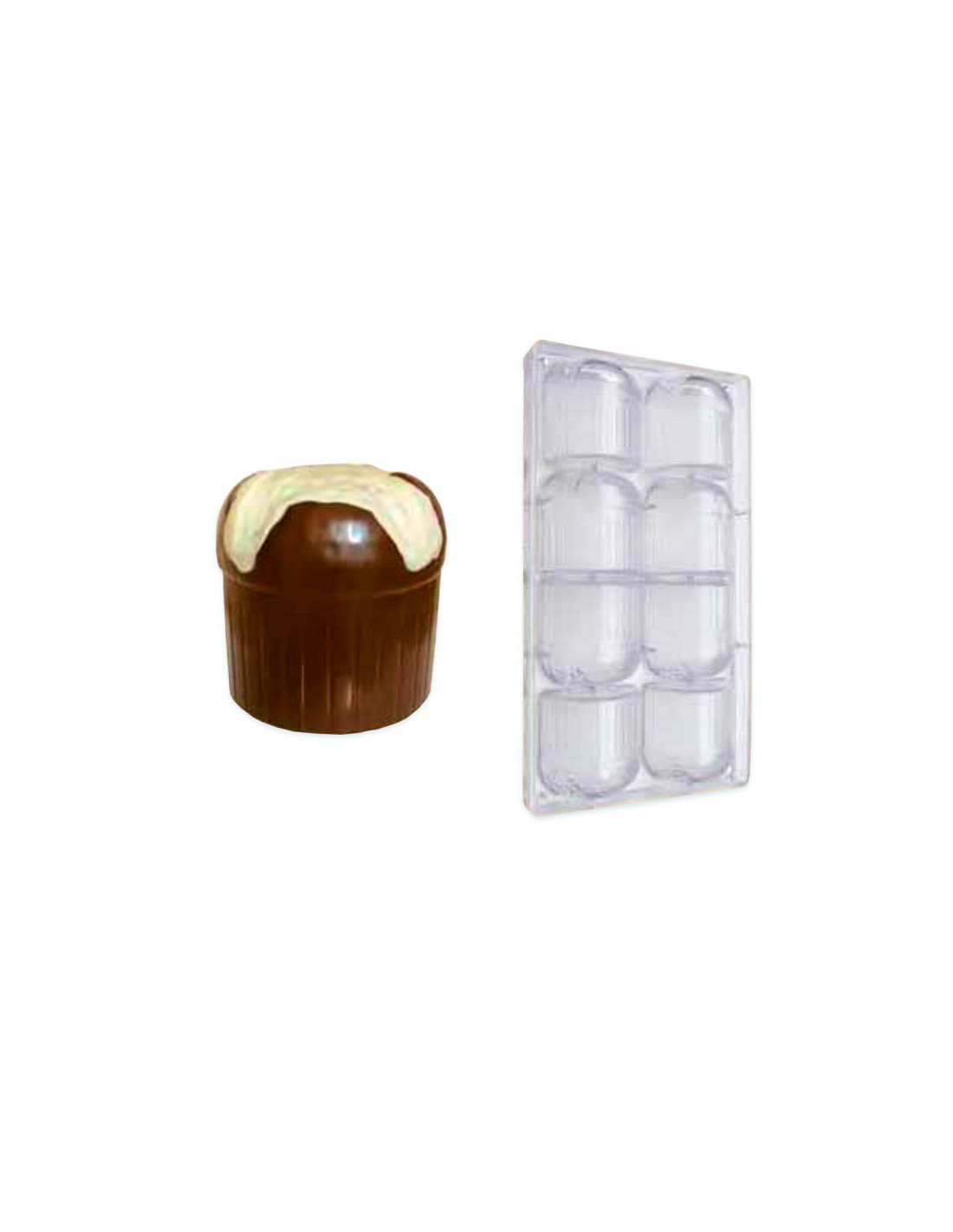 Molde de policarbonato campana Navidad (Ø 80 x 80 mm, 8 cavidades). Acoplable, ideal para hacer bombones y chocolates navideños con un acabado brillante y profesional.