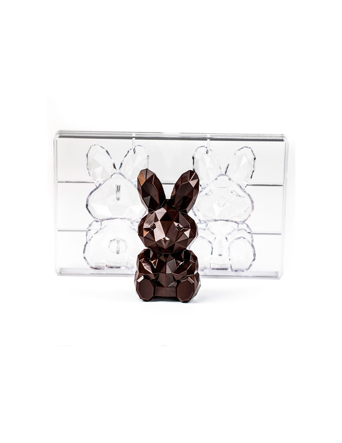 Molde de policarbonato para crear figuras de patito diamantado, con un peso aproximado de 38 g por pieza. Diseño ideal para colecciones de Pascua y elaboraciones temáticas.