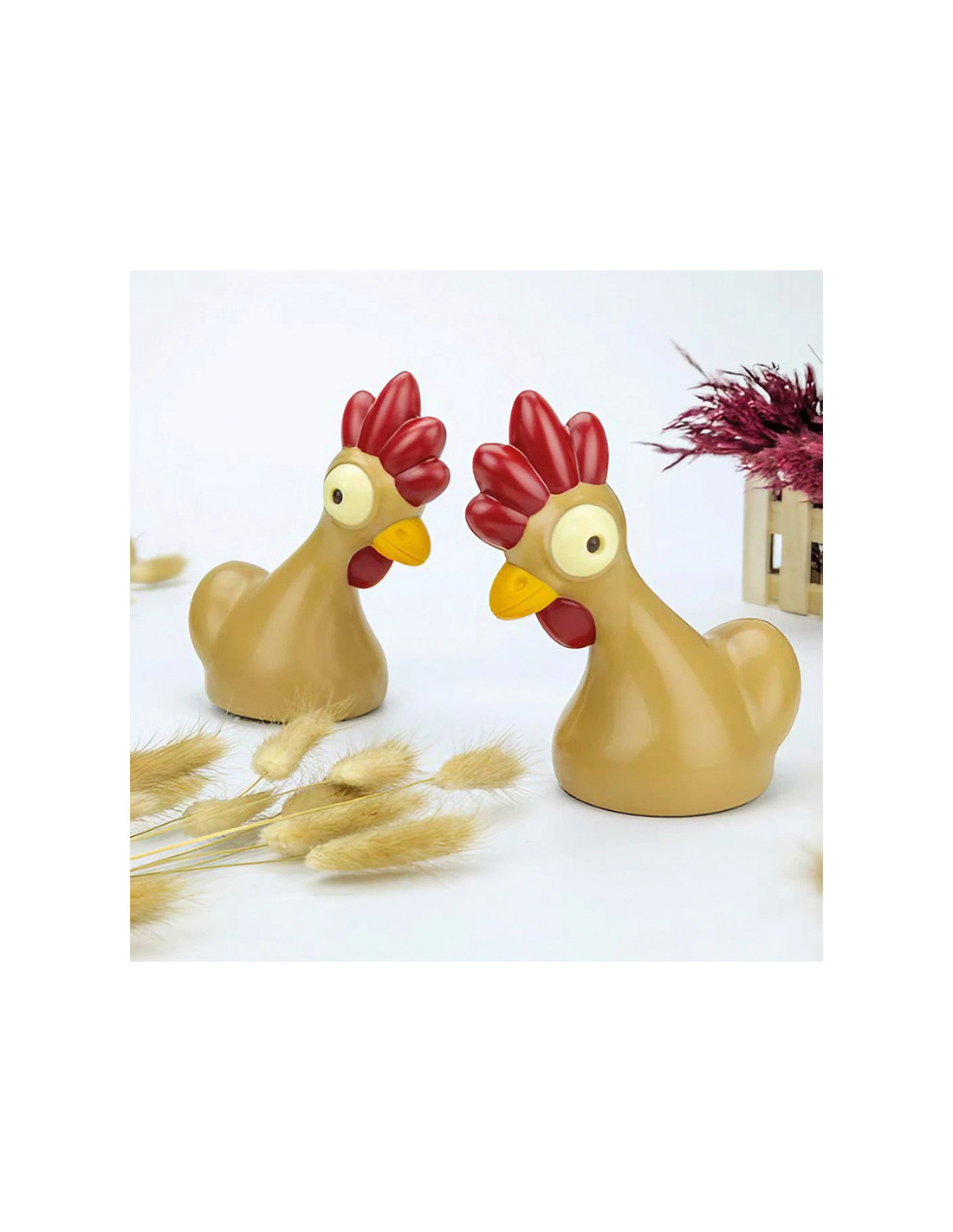 Molde doble de policarbonato para figura de chocolate Pollo Charlie, apto para producción industrial. Medidas: 73x73xh80 mm. 6 piezas. 70 gramos.