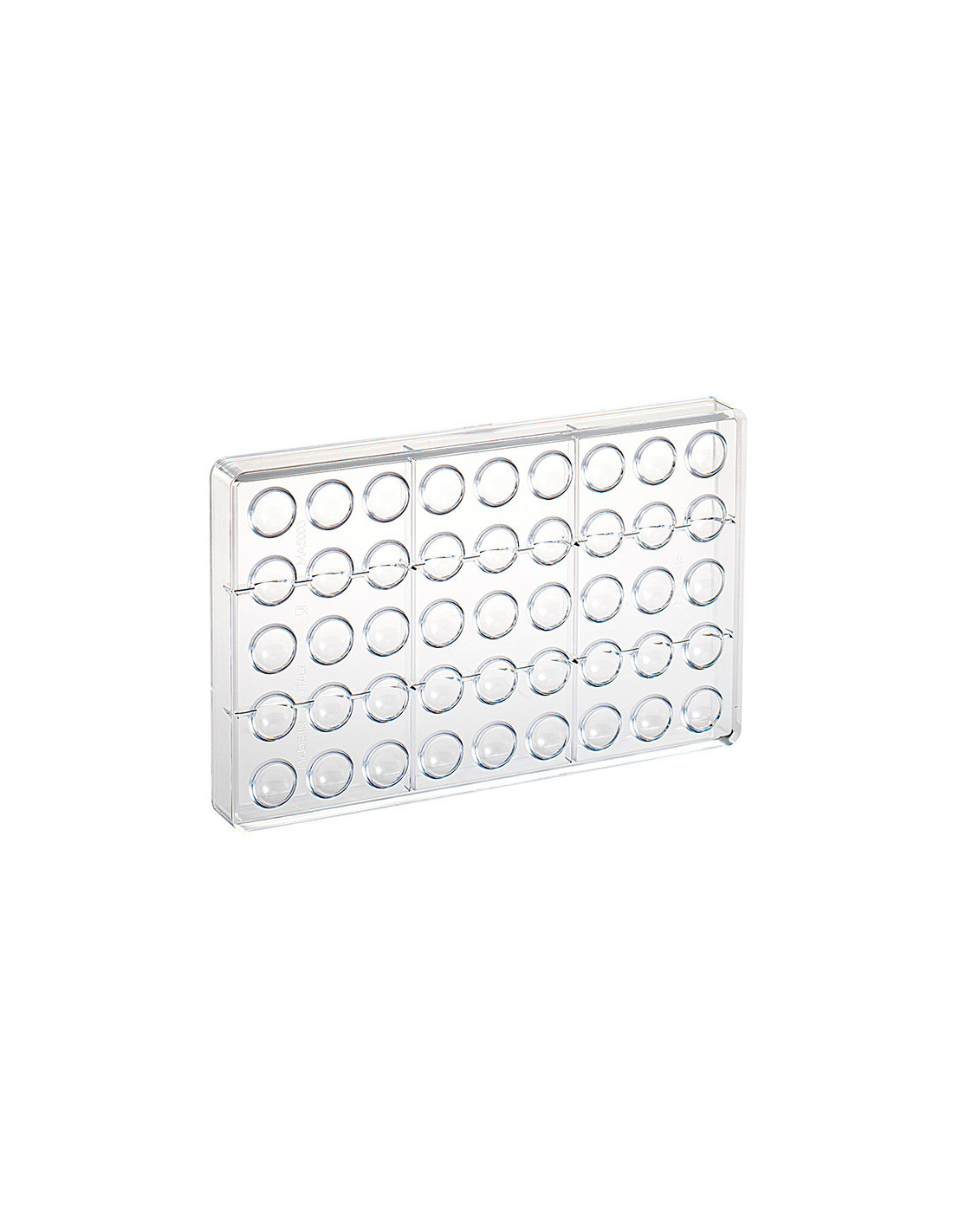 Molde de policarbonato semiesfera. Medidas: D20 mm. 45 cavidades.