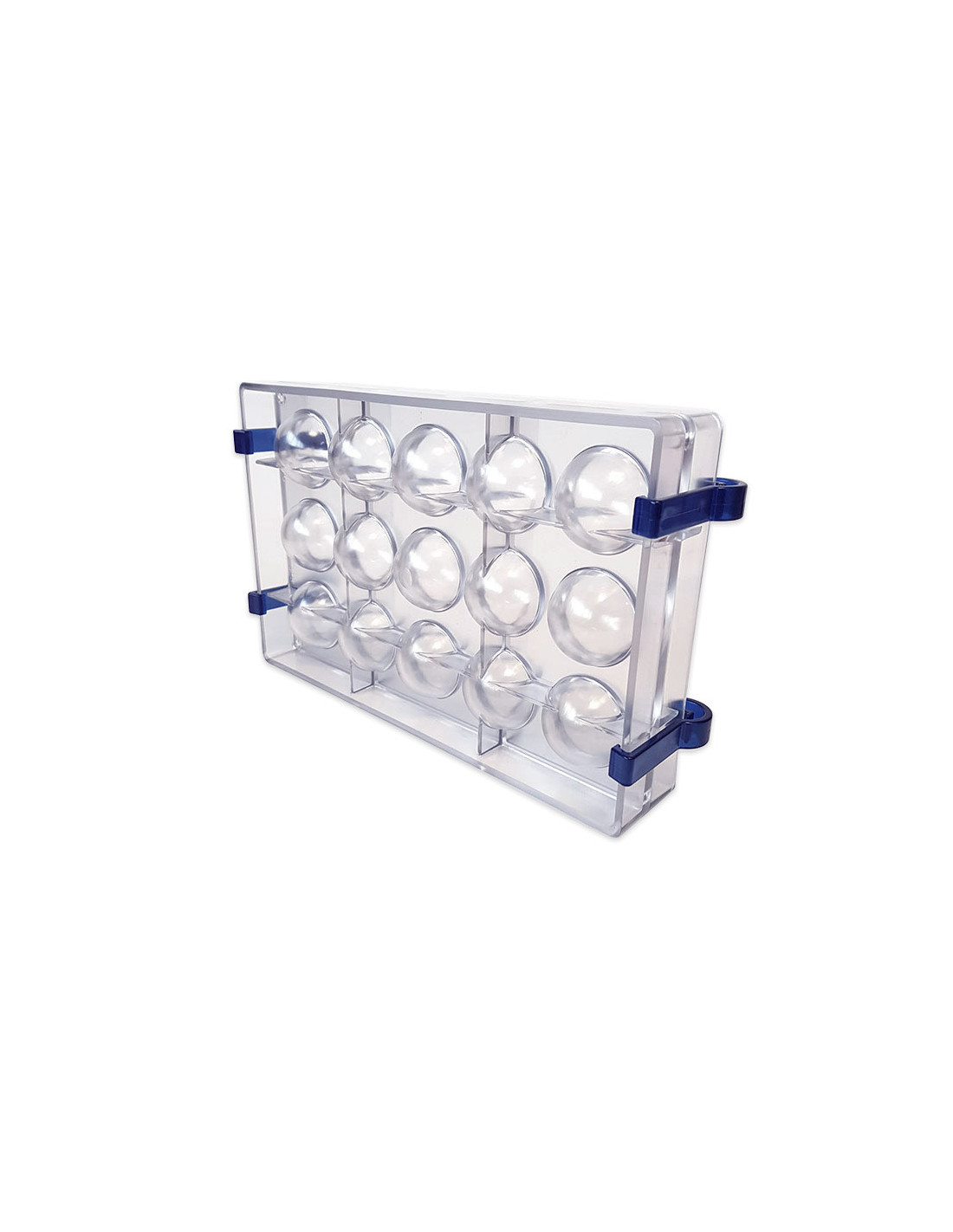 Molde de policarbonato para realizar 6 semiesferas de 70 mm de diámetro.