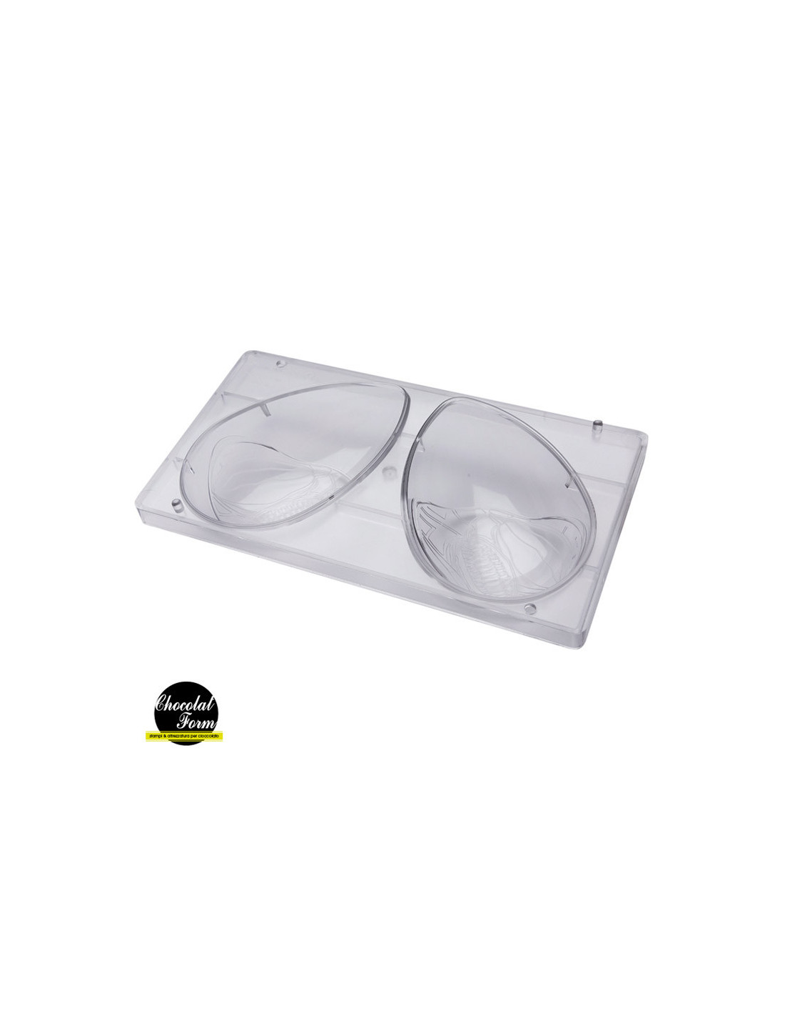 Molde de policarbonato para huevo Liso. Medidas: 230 mm x 163 mm. 1 cavidad. Volumen: 350 g.