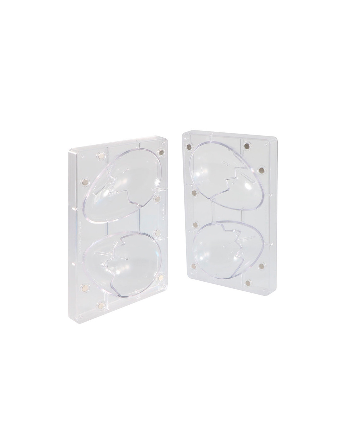 Molde de policarbonato acoplable para huevo Liso. Medidas: 30,5 mm x 22,5 mm. 32 cavidades. Volumen: 10 g. Molde: 275 mm x 175 mm.