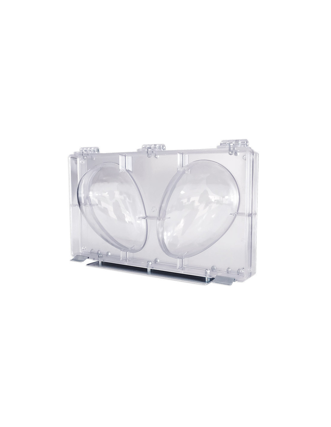 Molde de policarbonato para realizar 3 huevos de 150x100mm con anclajes para máquina rotativa.