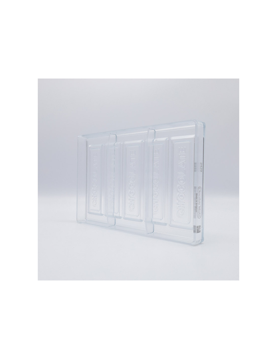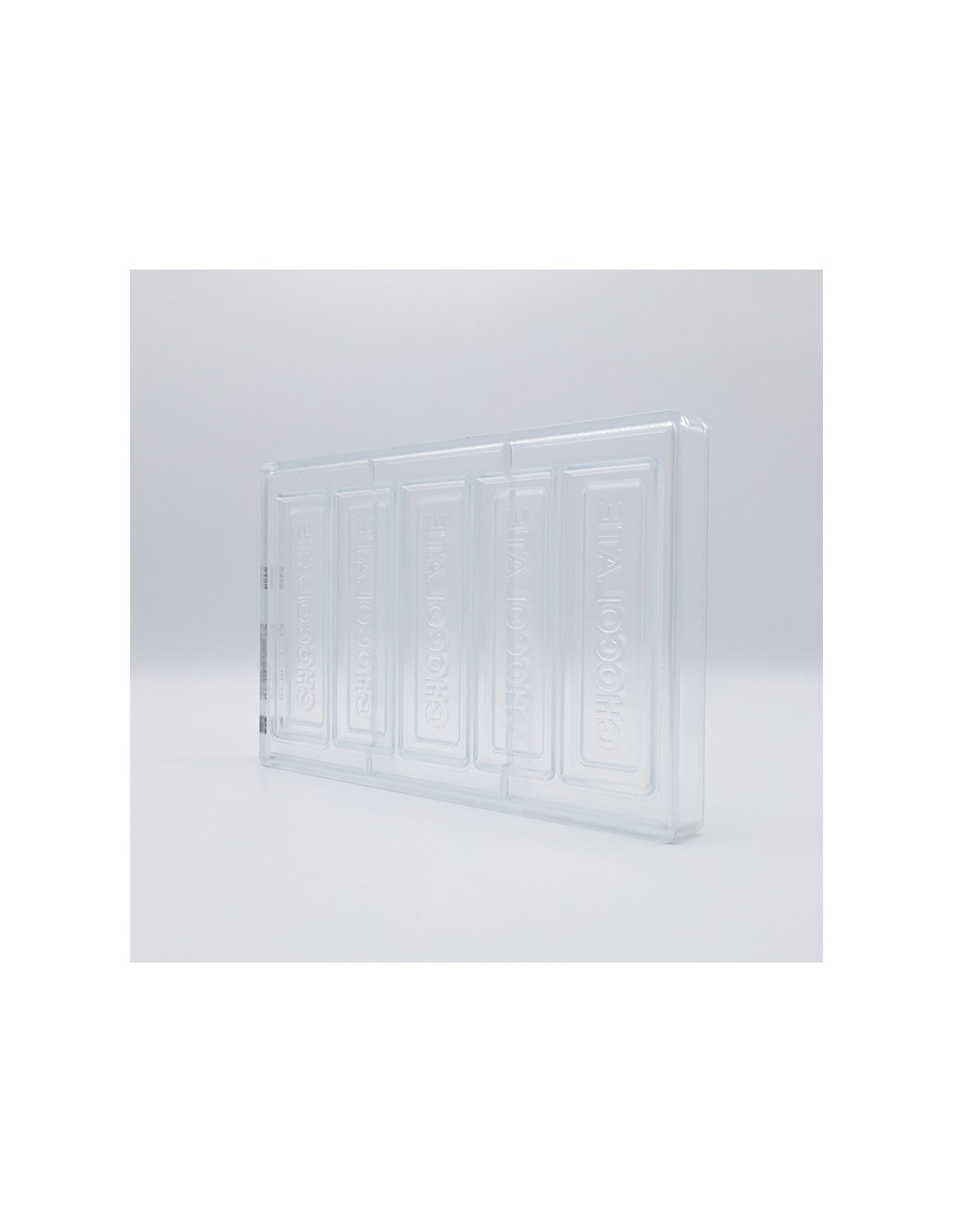 Molde de policarbonato CW2429 para tableta de chocolate de 132,5 x 43 x h 6 mm. 5 cavidades de 26 gramos.