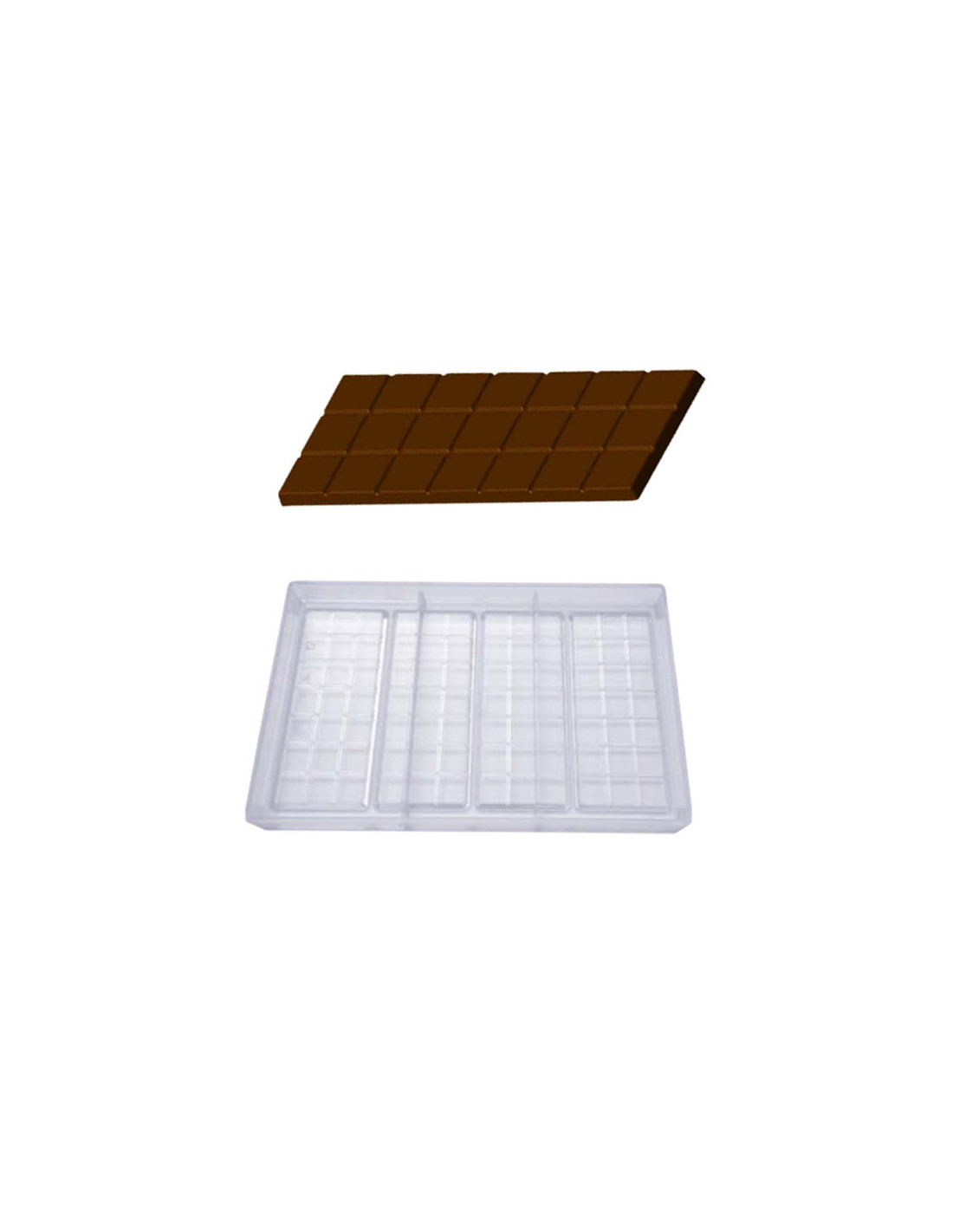 Molde de policarbonato para tableta de chocolate M260. Medidas: 148 x 74 x 4 mm. 3 cavidades.