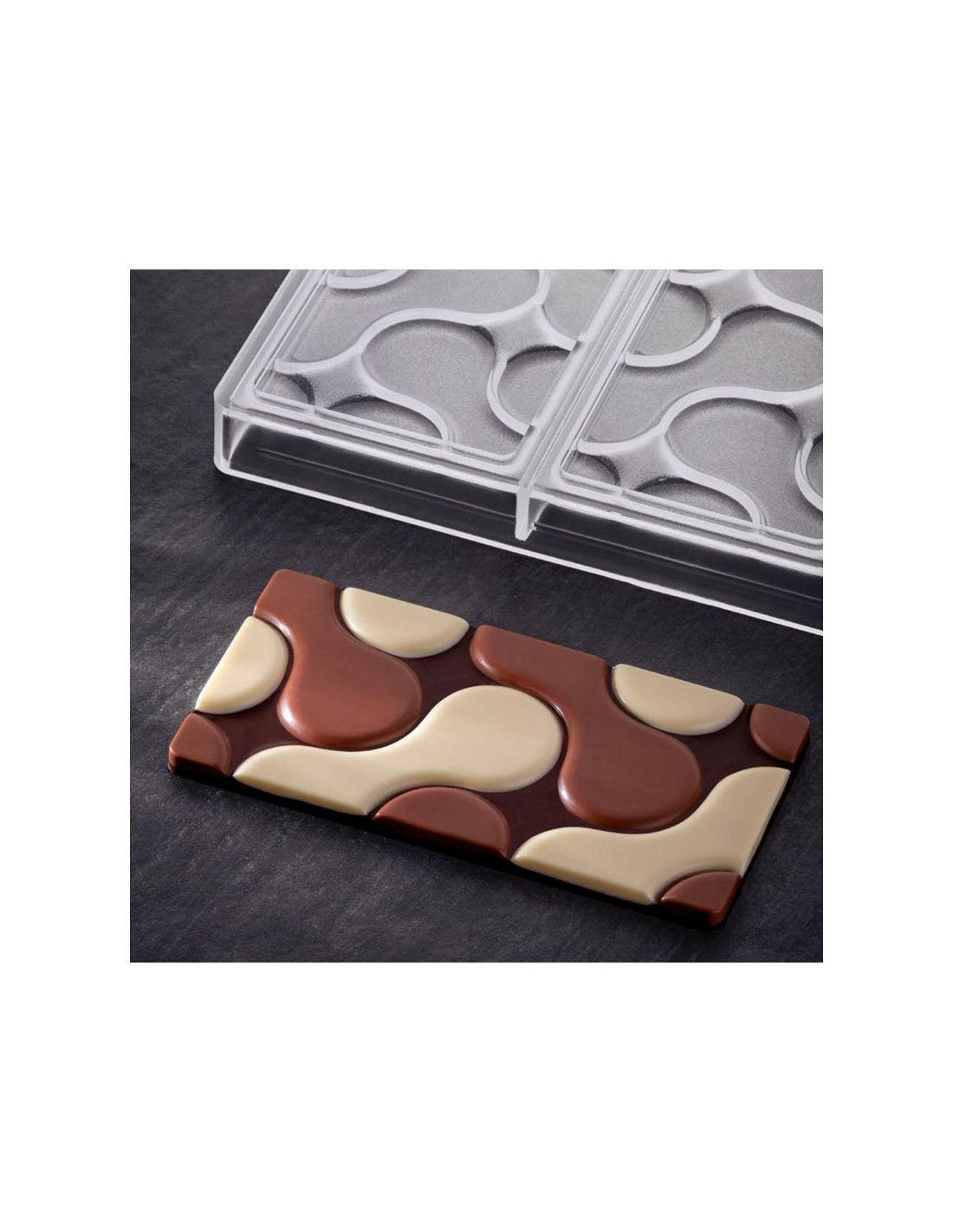 Molde de policarbonato para tableta de chocolate M251. Medidas: 112 x 28 x 5,7 mm. 8 cavidades.