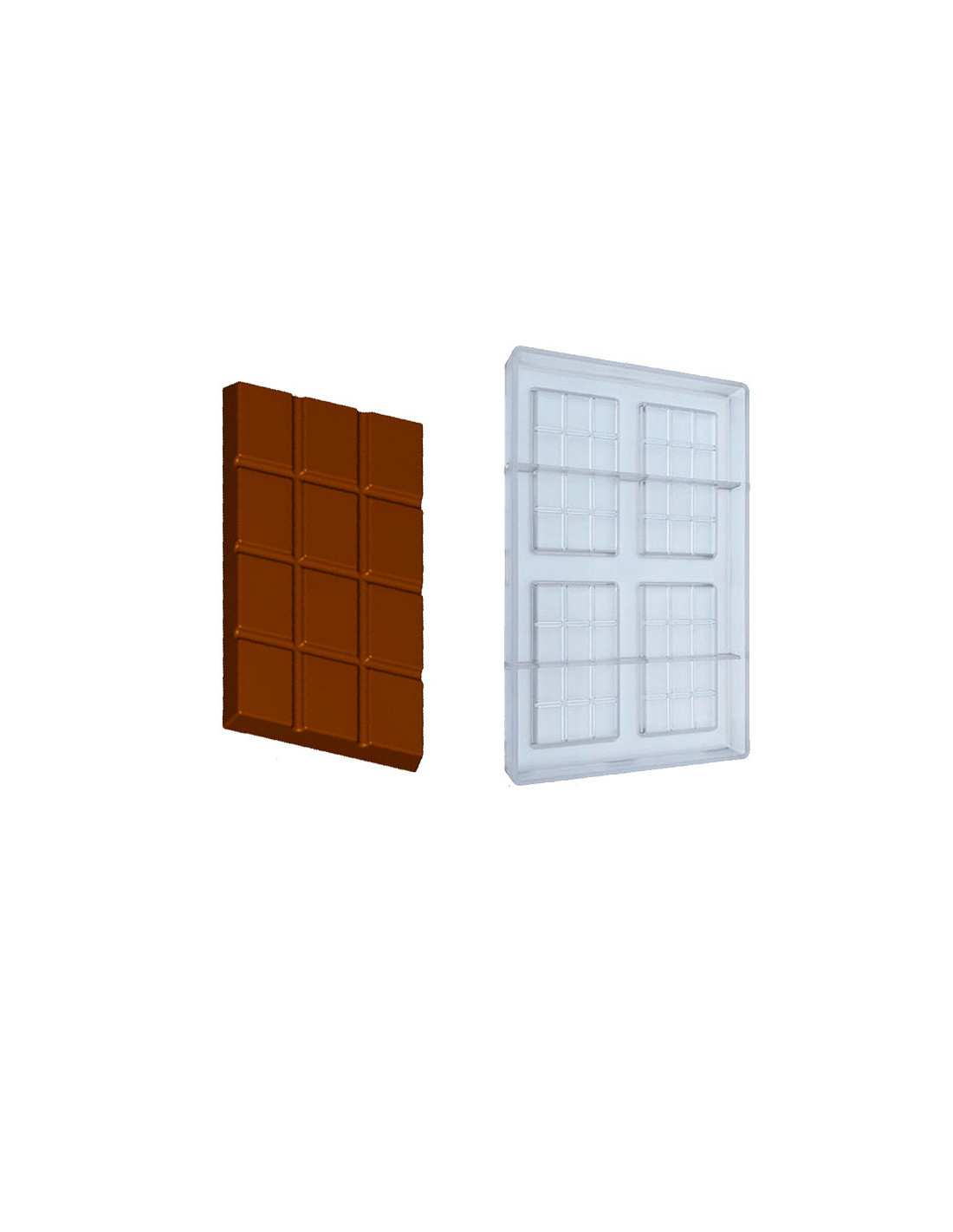 Molde de policarbonato para tableta de chocolate CW2438, de Chocolate World. 3 cavidades de 156 x 77 x 6 mm. Volumen: 70 gramos.