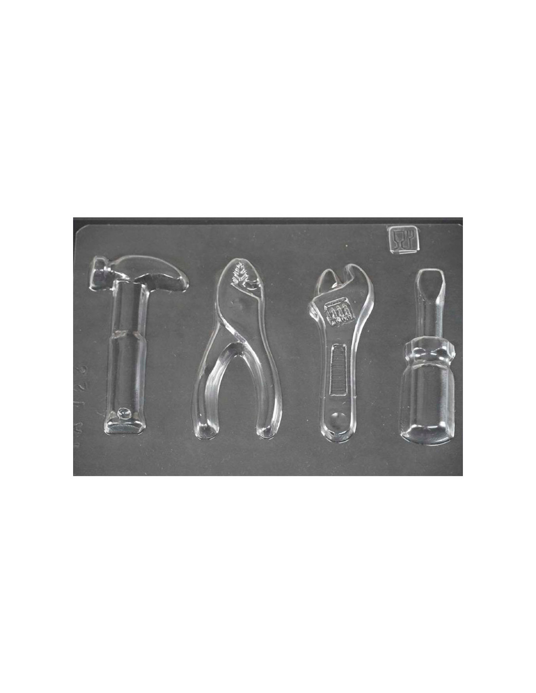 Molde de PVC termoformado para figura Martillo. Medidas: 180 x 95 x 15 mm. 1 cavidad. 1 molde.