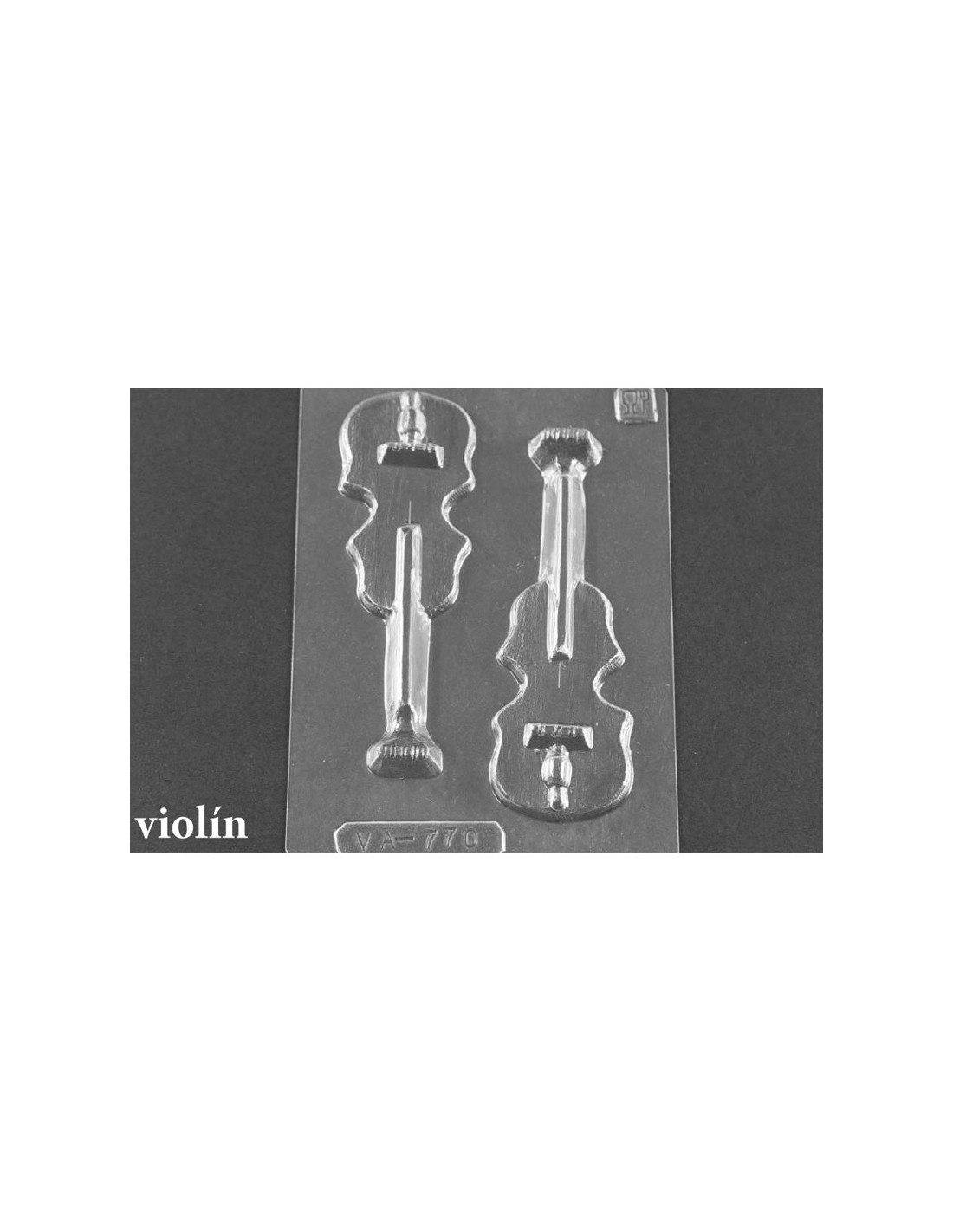 Molde de PVC para chocolate con forma de violín. Medidas del violín: 170 x 60 x 24 mm. Incluye 2 cavidades.