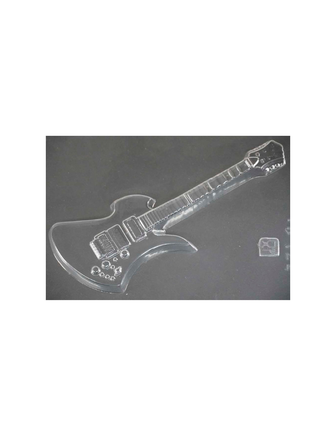 Molde de PVC termformado ARPA037 Instrumentos Musicales para decoración en chocolate. Medidas: 80 x 34 x 6 mm. 1 molde. 16 cavidades.
