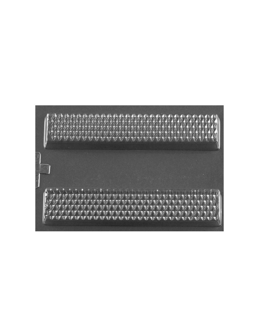 Molde de PVC termoformado para turrón individual. 2 cavidades. 1 molde. Medidas: 200 x 40 x h 20 mm. Producción: 2 turrones.
