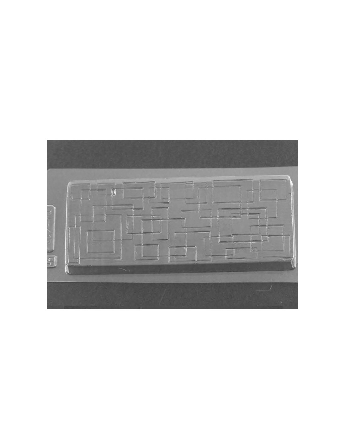 Molde de PVC termoformado para turrón individual TU408. Medidas: 200 x 80 x h 20 mm. 1 cavidad. Producción: 1 turrón. 1 molde.