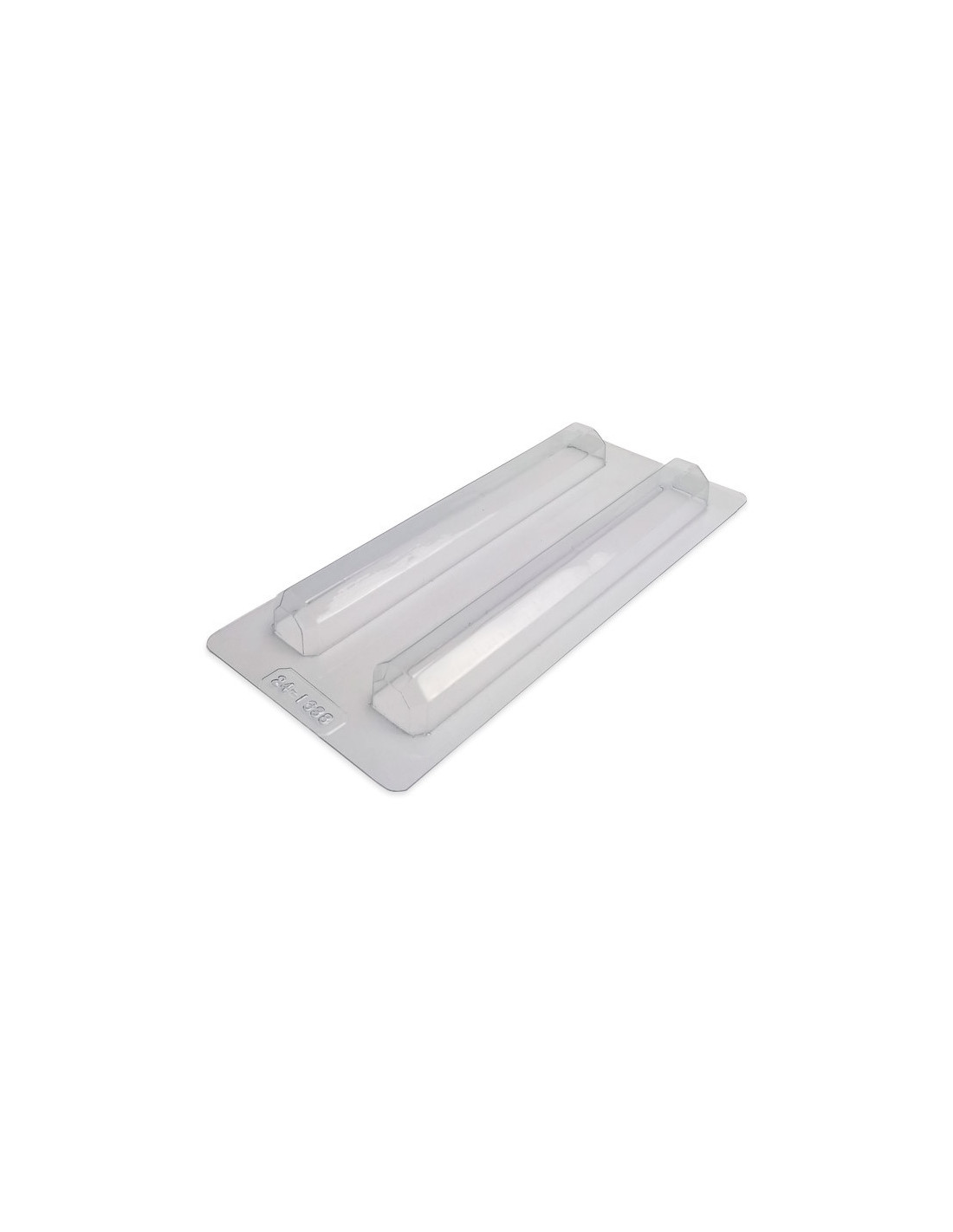 Molde de PVC termoformado Turrón Rectángulo para turrón individual. Medidas: 80 x 33 x h 18 mm. 4 cavidades. Producción: 4 turrones.