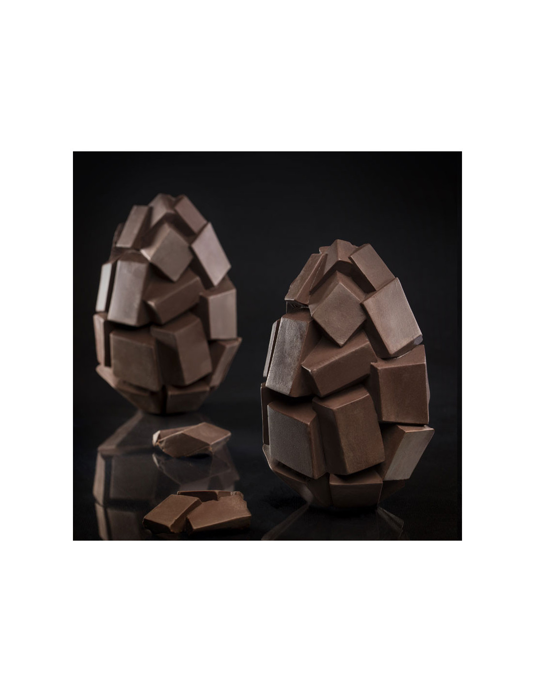 Molde de silicona alimentaria de alto detalle Huevo Cubos, de Decosil. Medidas cavidad: 120 x 110 x h 180 mm. Volumen: 420 gramos aproximados de chocolate.