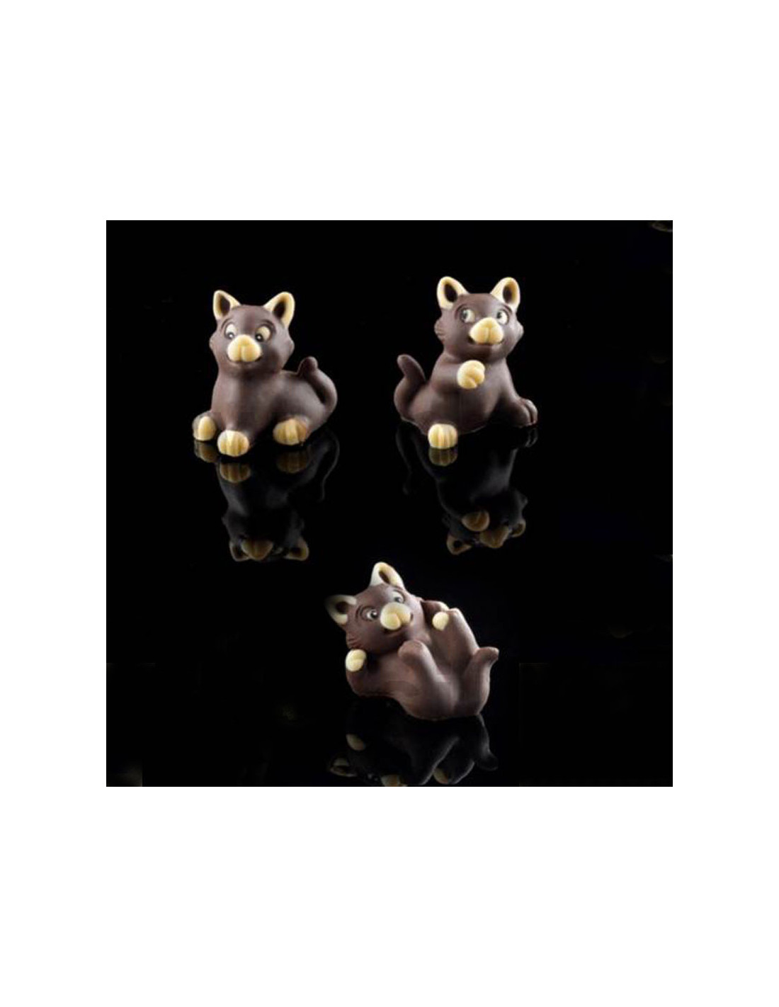 Molde de silicona 3D (2 piezas) para 3 gatitos simpáticos. Figuras completas y con gran detalle.