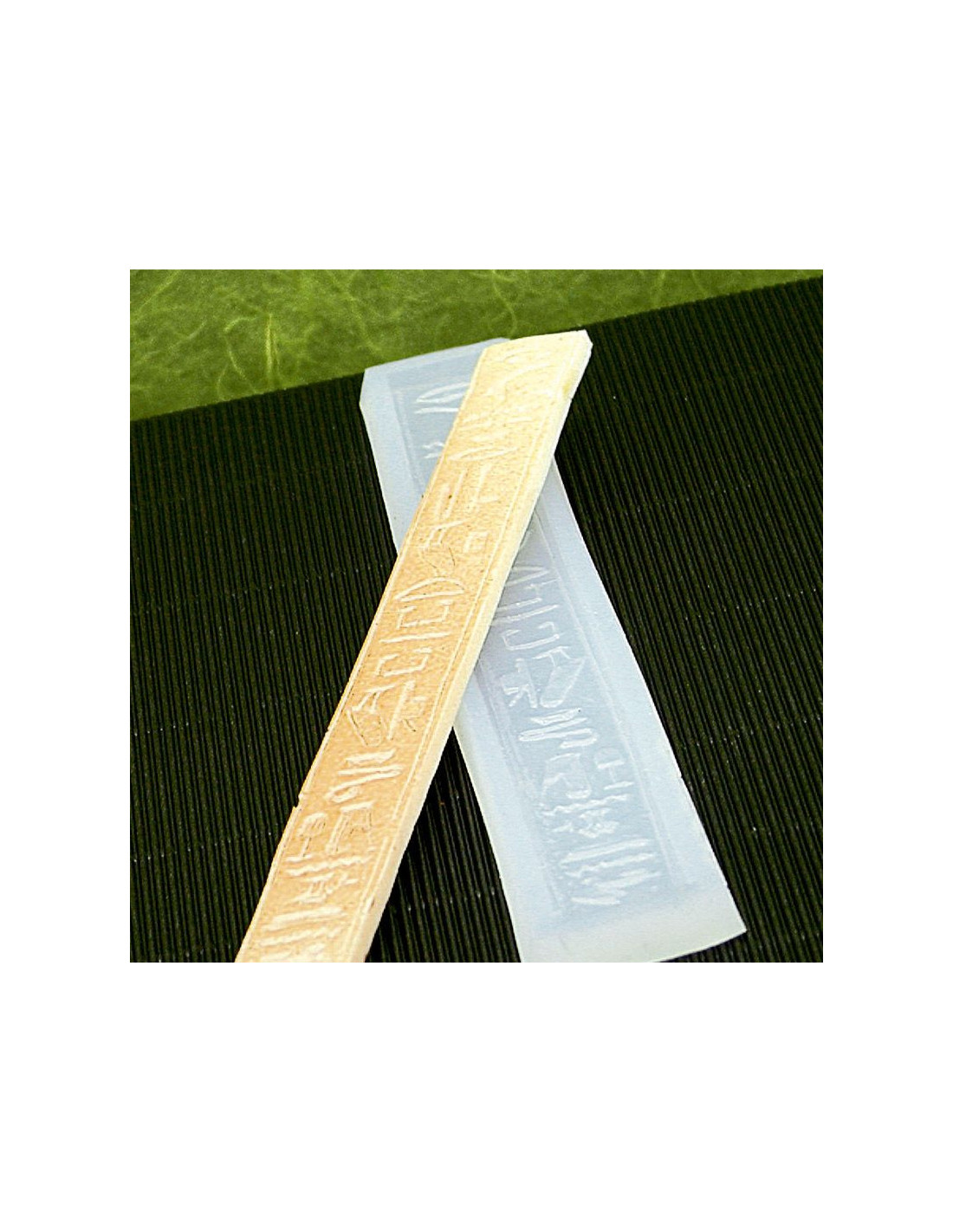 Molde de silicona alimentaria Estela egipcia N8 Decosil. Medidas cavidad: 57 x 17 x h5 mm. Volumen: 62 gramos.